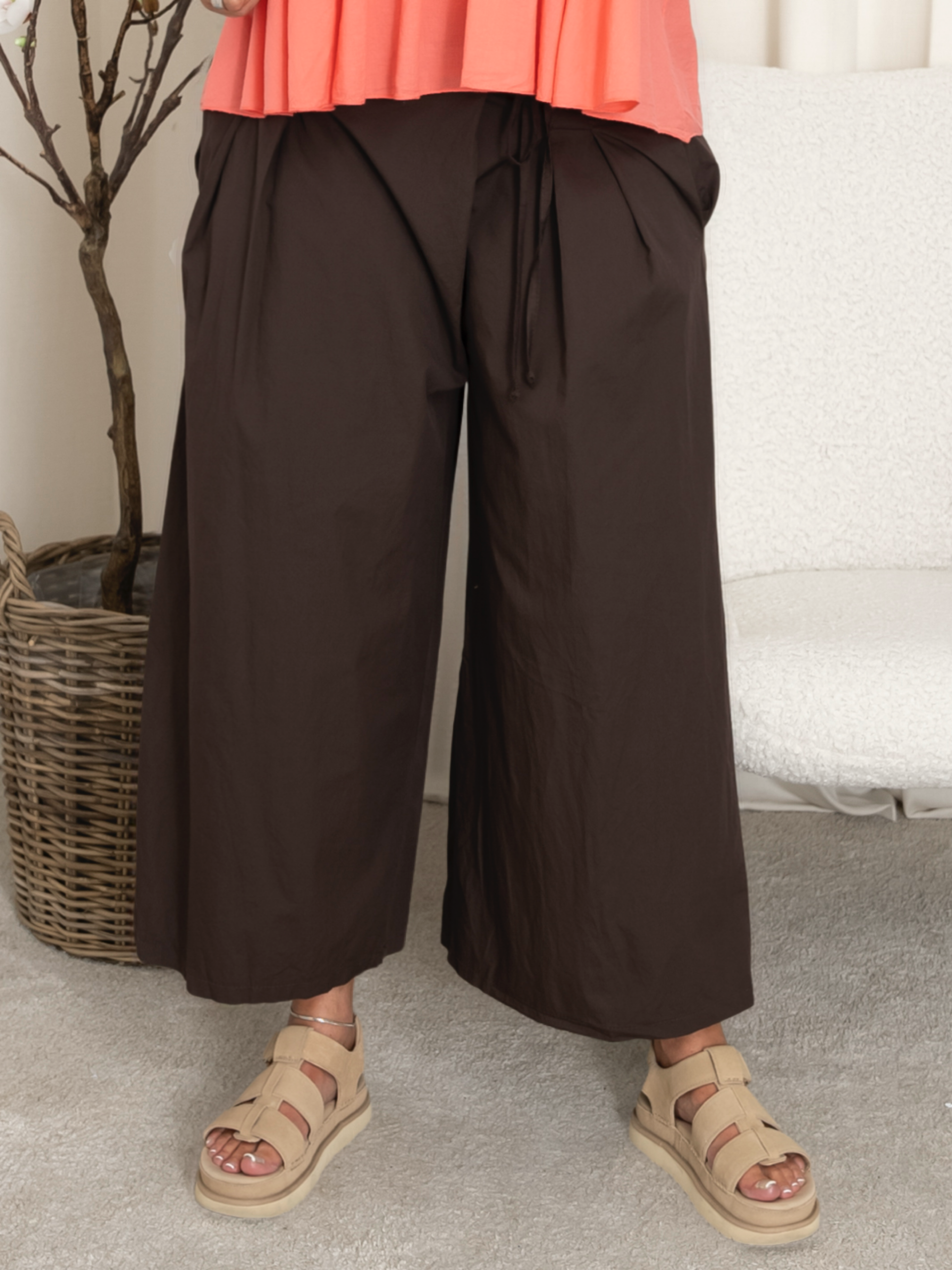 Buksen har elastik bagpå i taljen og bindebånd i siden, hvilket gør den utrolig behagelig at have på og nem at tilpasse efter din figur. Det lette materiale falder flot og føles skønt mod huden – perfekt til både ferie og hverdagsbrug.