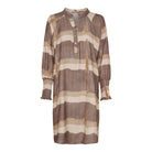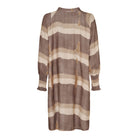Denne kjole med bredstribet print kombinerer komfort med et afslappet og stilfuldt udtryk. Den løstsiddende pasform og lette viskosekvalitet gør den ideel til både hverdagsbrug og mere afslappede anledninger.