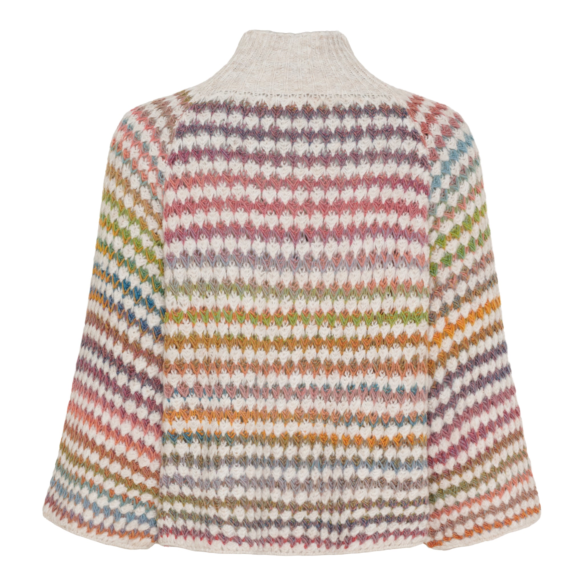 Denne smukke striktrøje forener klassisk mønster med en moderne silhuet. Det tætte strikdesign og de fine nuancer skaber et sofistikeret udtryk, som samtidig føles afslappet og hyggeligt.