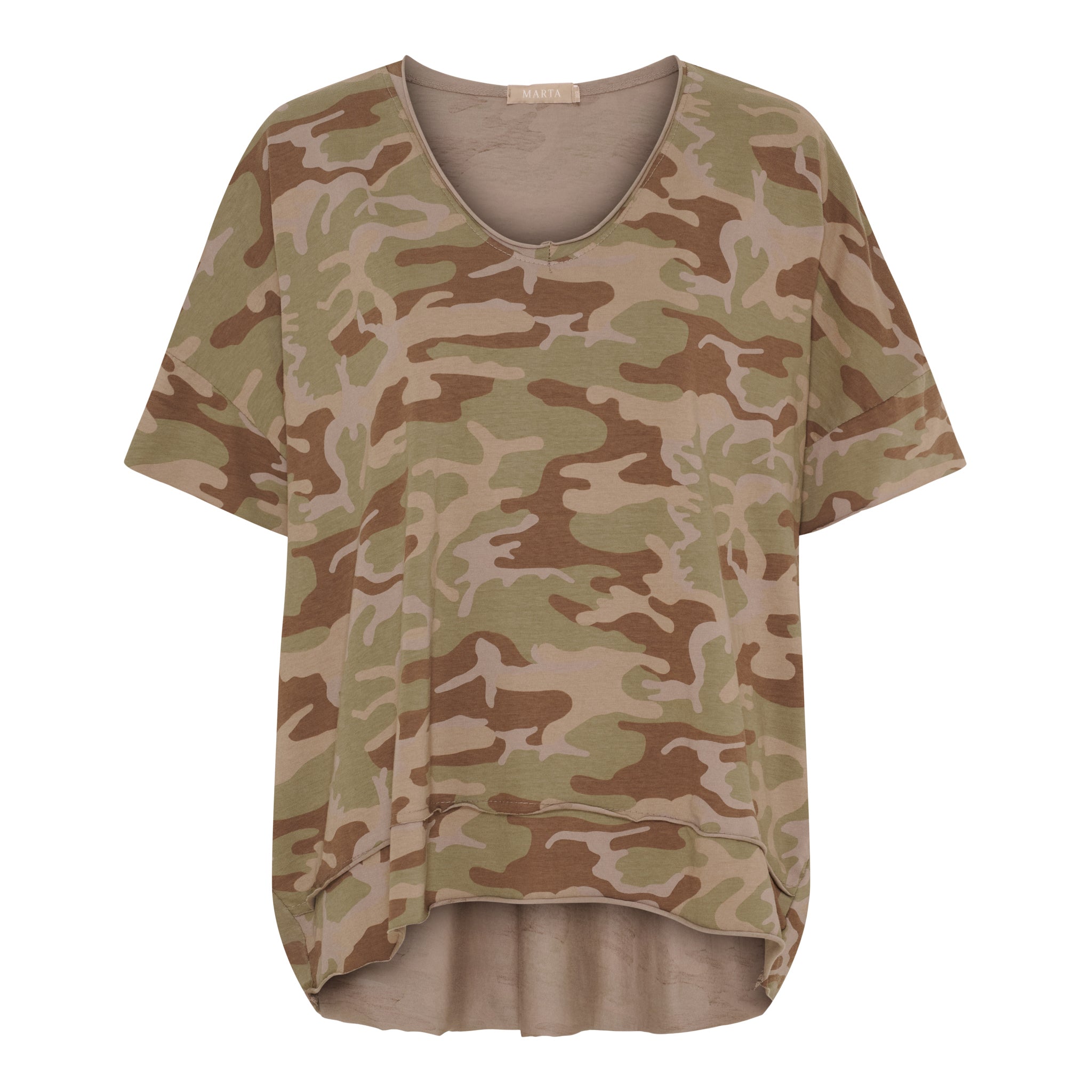 Denne t-shirt er til dig, der elsker et cool og selvsikkert look med kant. Det rå camo mønster giver masser af attitude og personlighed, mens den lette kvalitet og afslappede pasform gør den utrolig behagelig at have på.