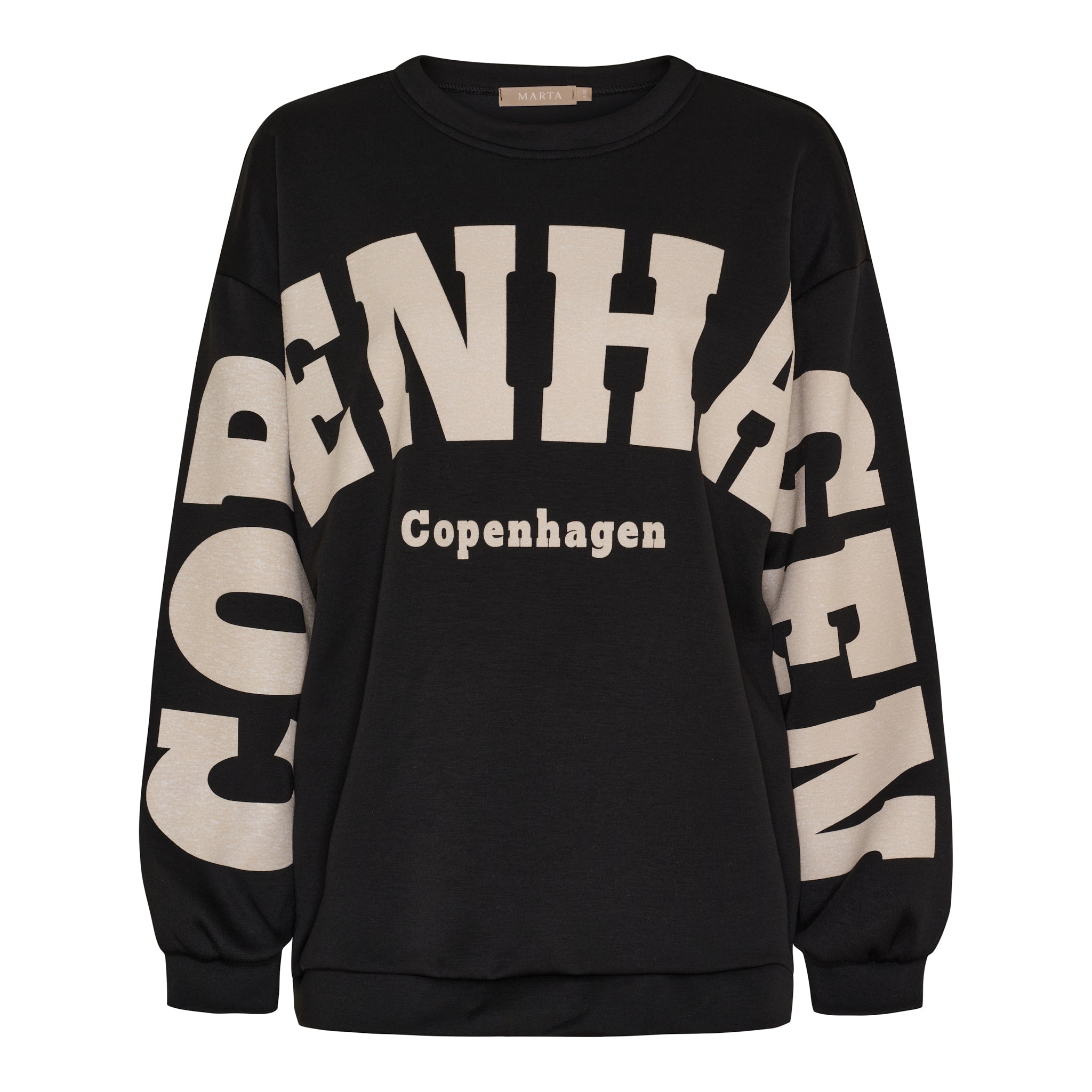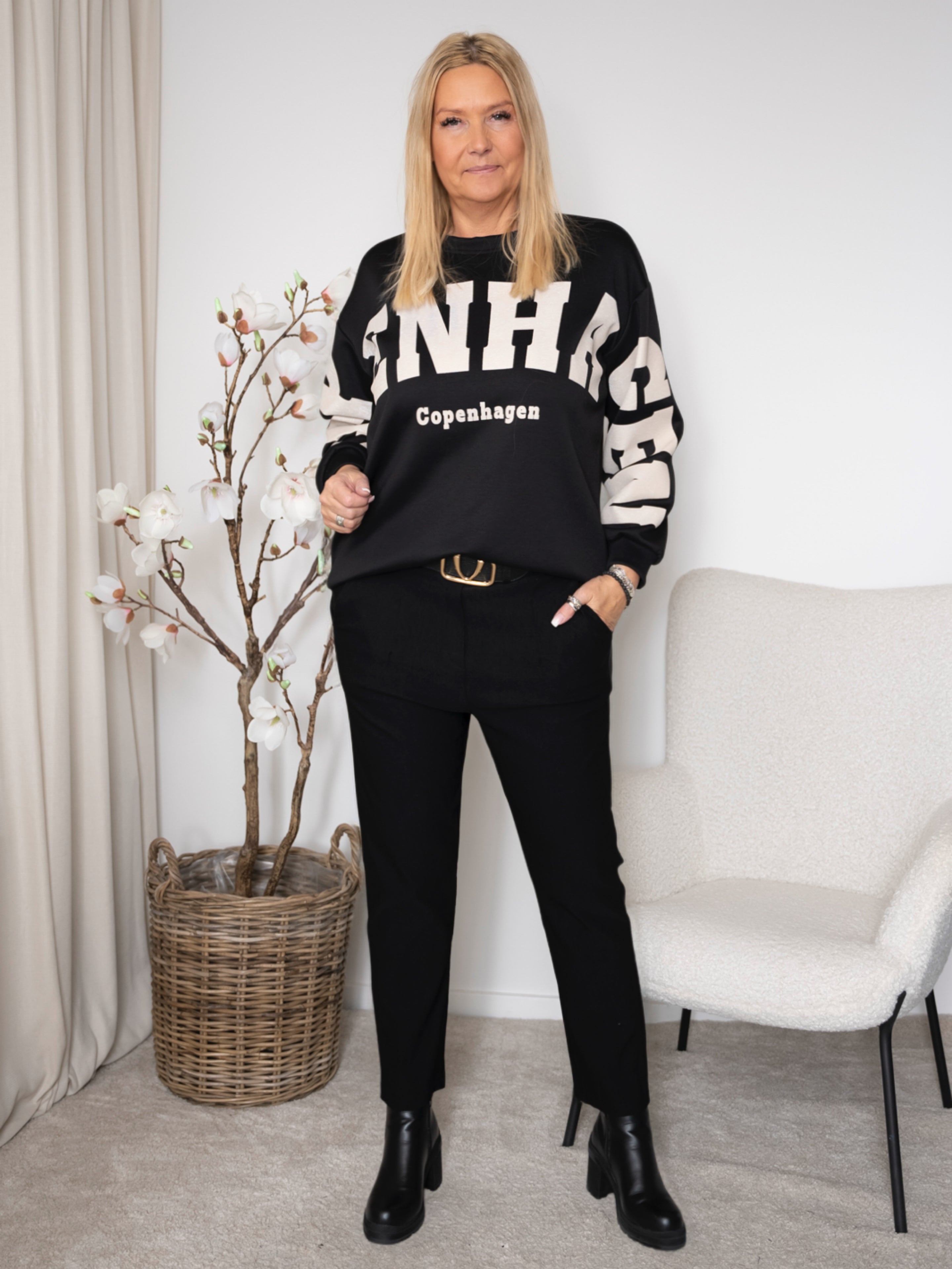 Denne sweatshirt emmer af afslappet storbystil med sit markante "Copenhagen"-print henover bryst og ærmer. Den har en moderne og sporty vibe, som gør den perfekt til både hverdagsbrug og afslappede dage, hvor komfort og stil går hånd i hånd.