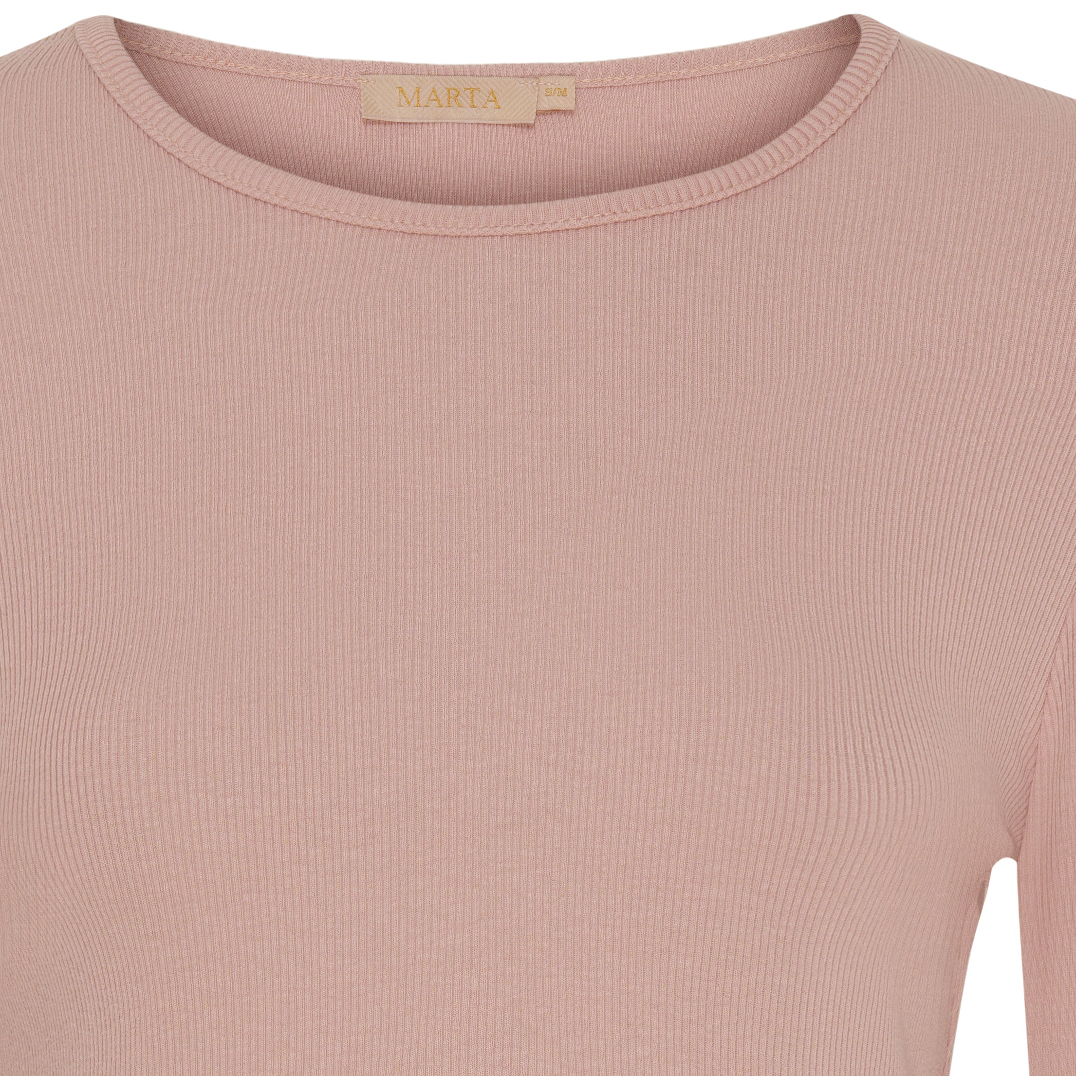 Trøjen er fremstillet i et blødt og strækbart ribmateriale, der giver optimal komfort og bevægelsesfrihed. Den runde halsudskæring tilføjer et klassisk touch, mens det minimalistiske design gør den nem at style med alt fra jeans til nederdele. Uanset om du er på farten eller hjemme, er denne trøje din go-to for et stilfuldt og afslappet look.