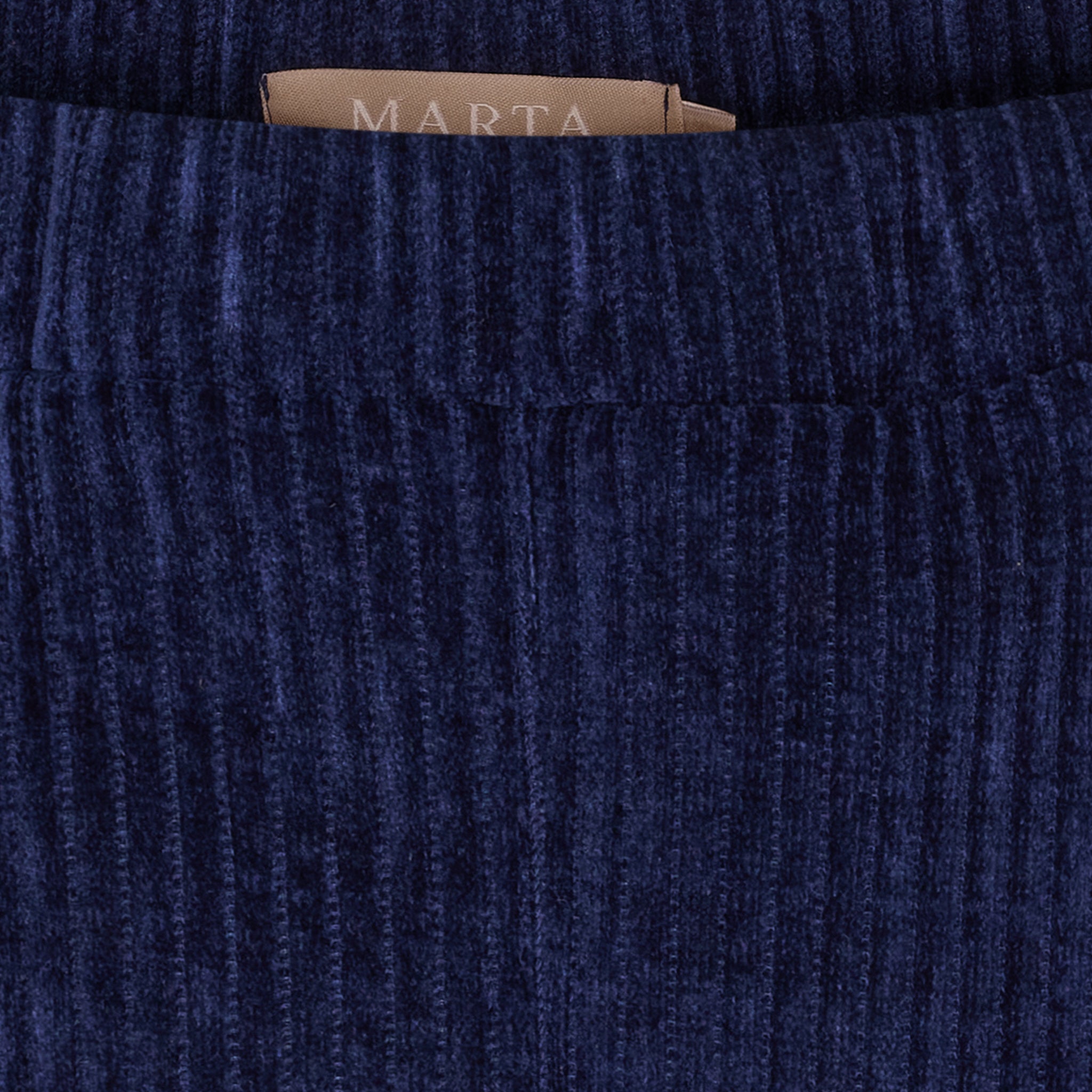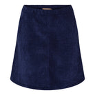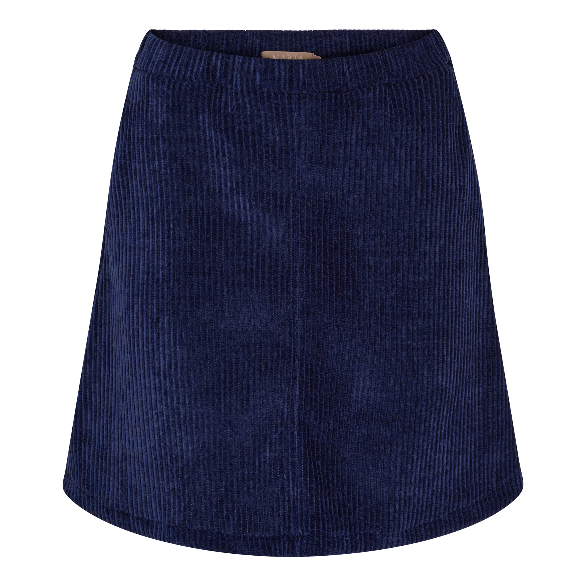 Denne nederdel forener blød struktur med et enkelt, tidløst snit. Den brede fløjlskvalitet giver et lækkert, taktilt udtryk, hvor de lodrette ribbaner tilfører dybde og et diskret, elegant spil i stoffet. Pasformen er let A-formet, hvilket giver et naturligt fald og en flatterende silhuet, der er nem at style både casual og mere dressed.