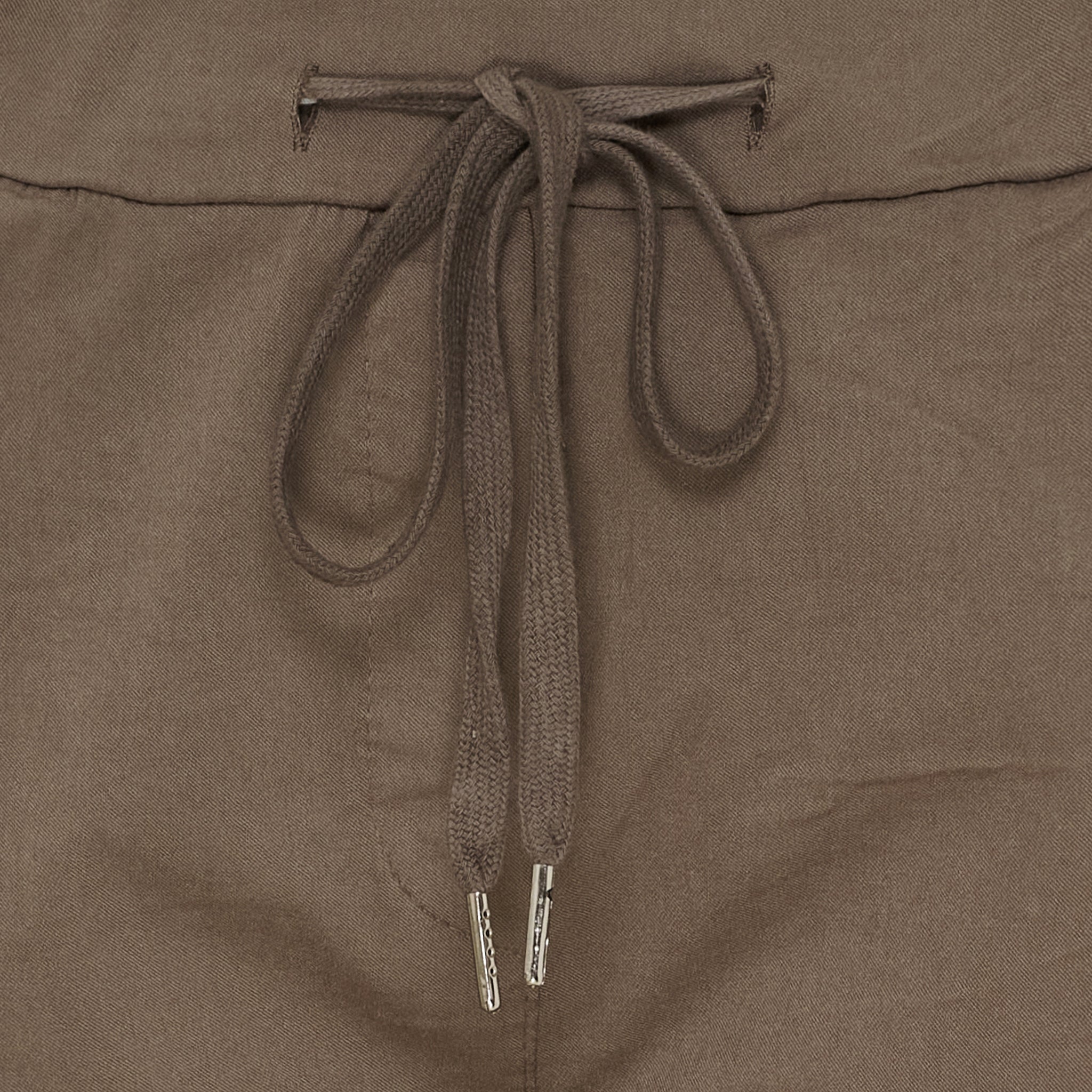 Disse alsidige bukser er både stilrene og komfortable – ideelle til dig, der ønsker et afslappet look med et moderne twist. Det bløde stretchy materiale kombineret med elastisk talje og bindebånd gør dem super behagelige at have på, mens den smalle pasform og opsmøg ved anklerne giver et smart og tidssvarende udtryk.