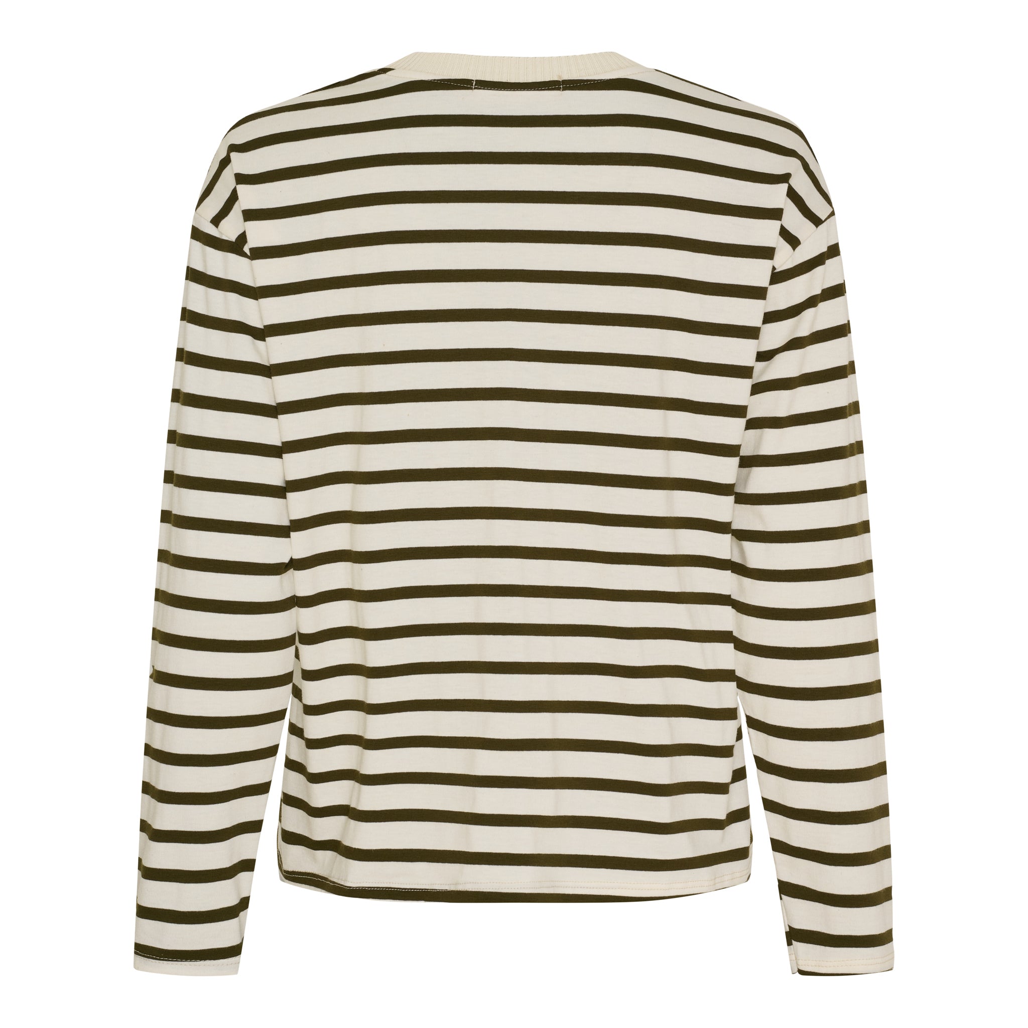 Denne stribede bluse er et uundværligt item i garderoben, når det skal være både casual og stilrent. Med sit enkle snit og bløde jerseykvalitet føles den skøn mod huden og er perfekt til hverdagsbrug.
