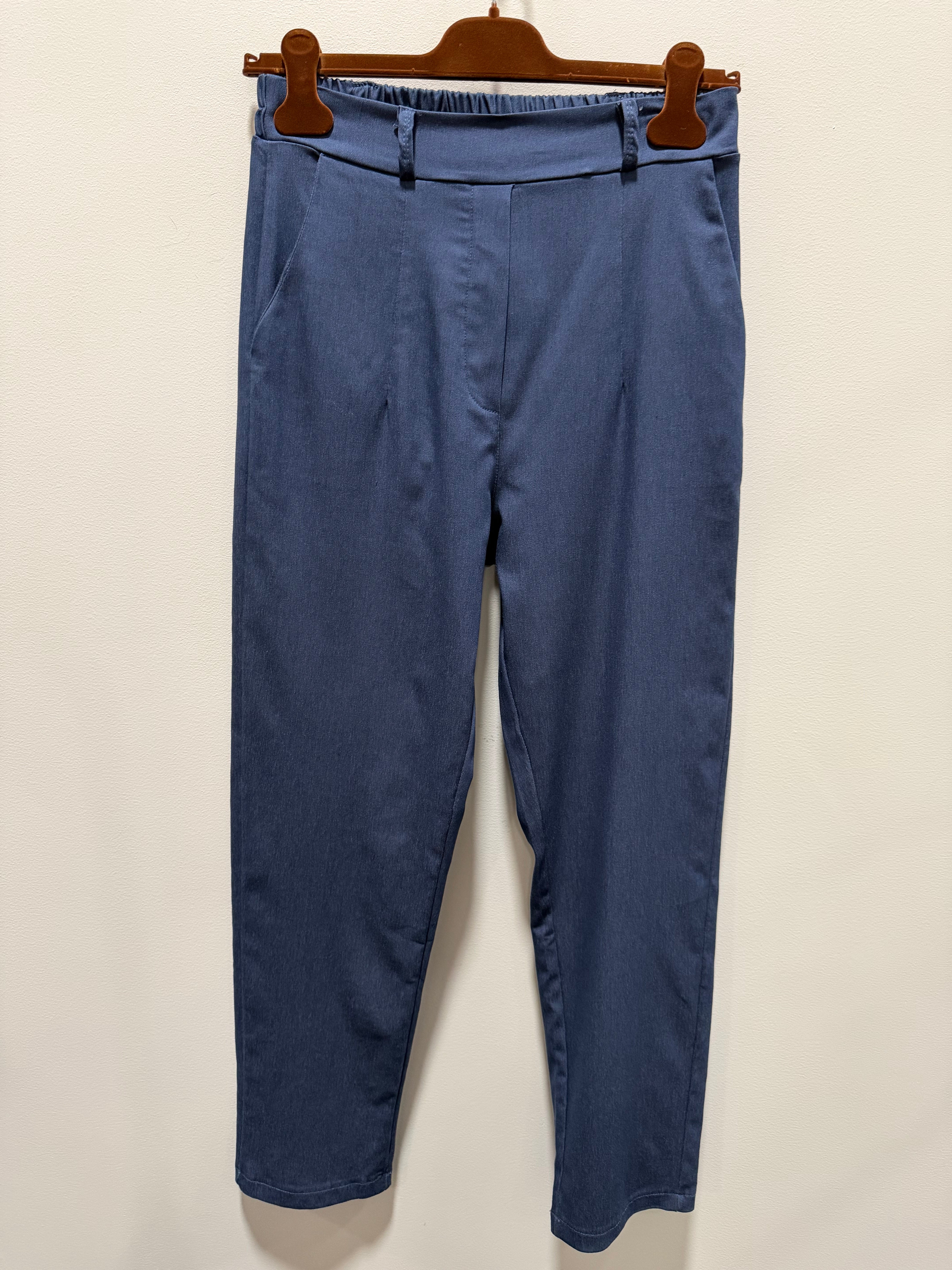 Designet er gennemført med elastik bagpå i linningen og praktiske sidelommer. De smalle ben og 7/8 længde gør bukserne nemme at style med alt fra skjorter til strik og blazere.