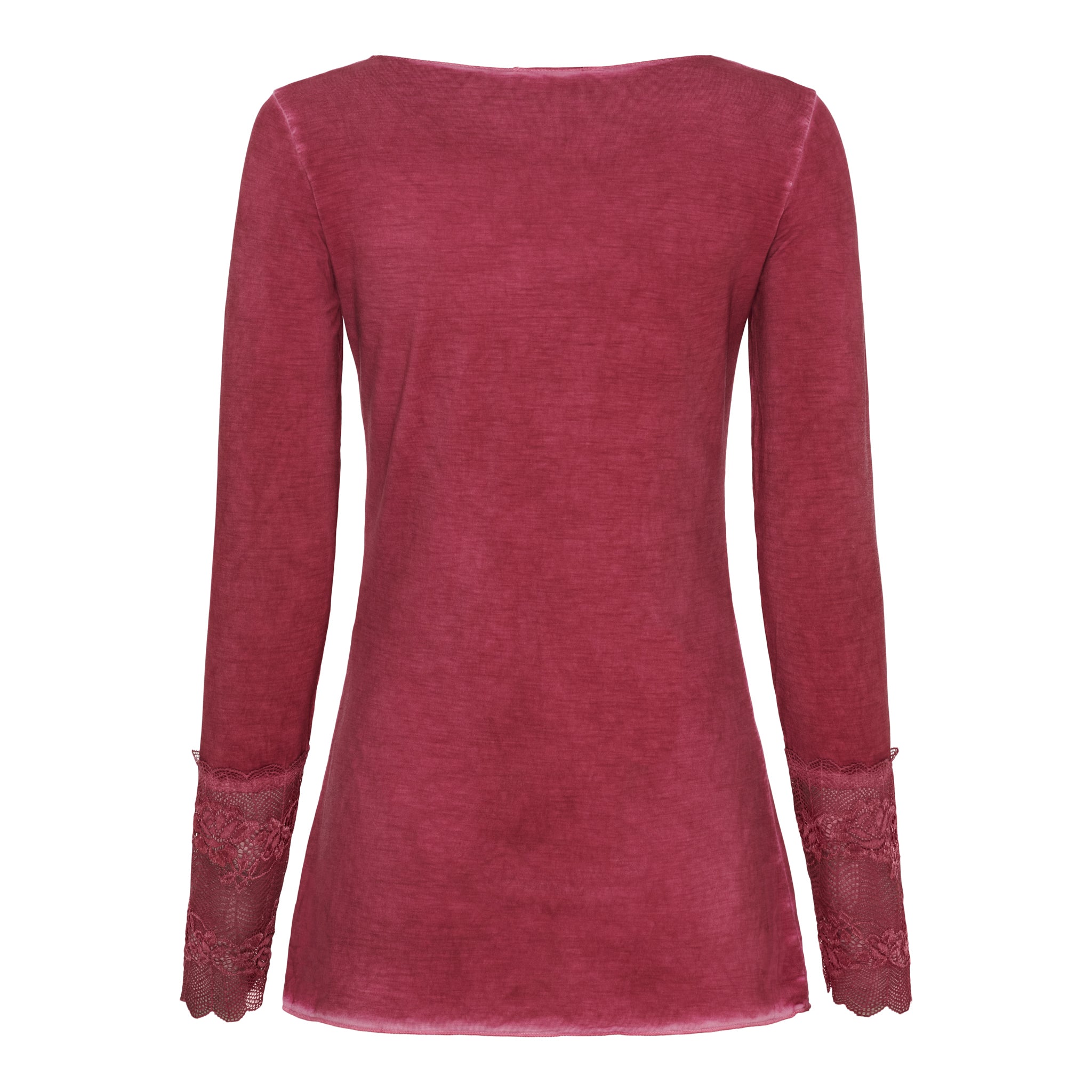 Blusen er udstyret med en elegant rund halsudskæring, hvilket giver et klassisk touch. De lange ærmer afsluttes med smukke blonde-detaljer, der tilføjer en feminin og romantisk dimension til designet. Denne bluse er let at style med både bukser og nederdele, hvilket gør den til en alsidig favorit i enhver garderobe.