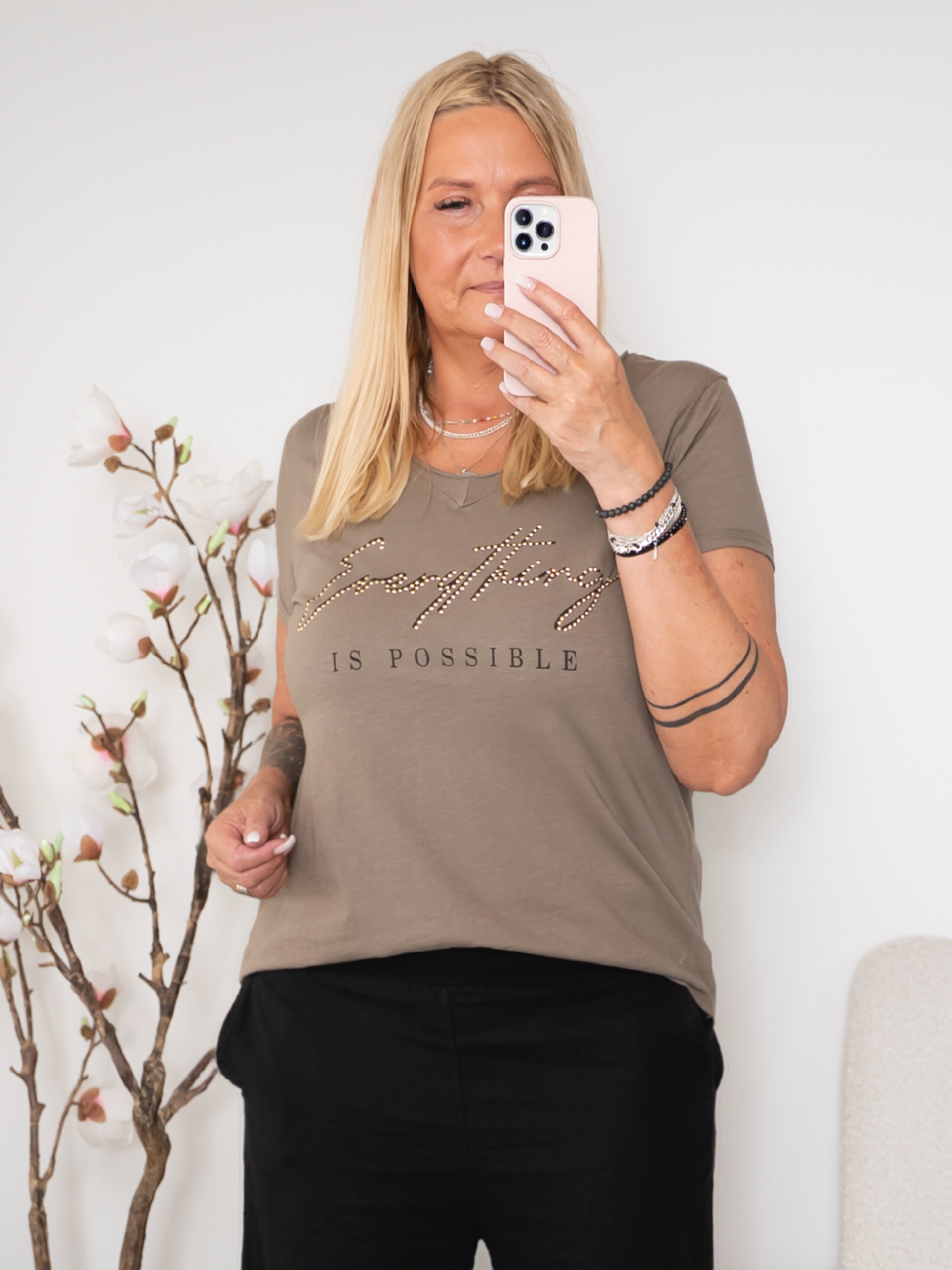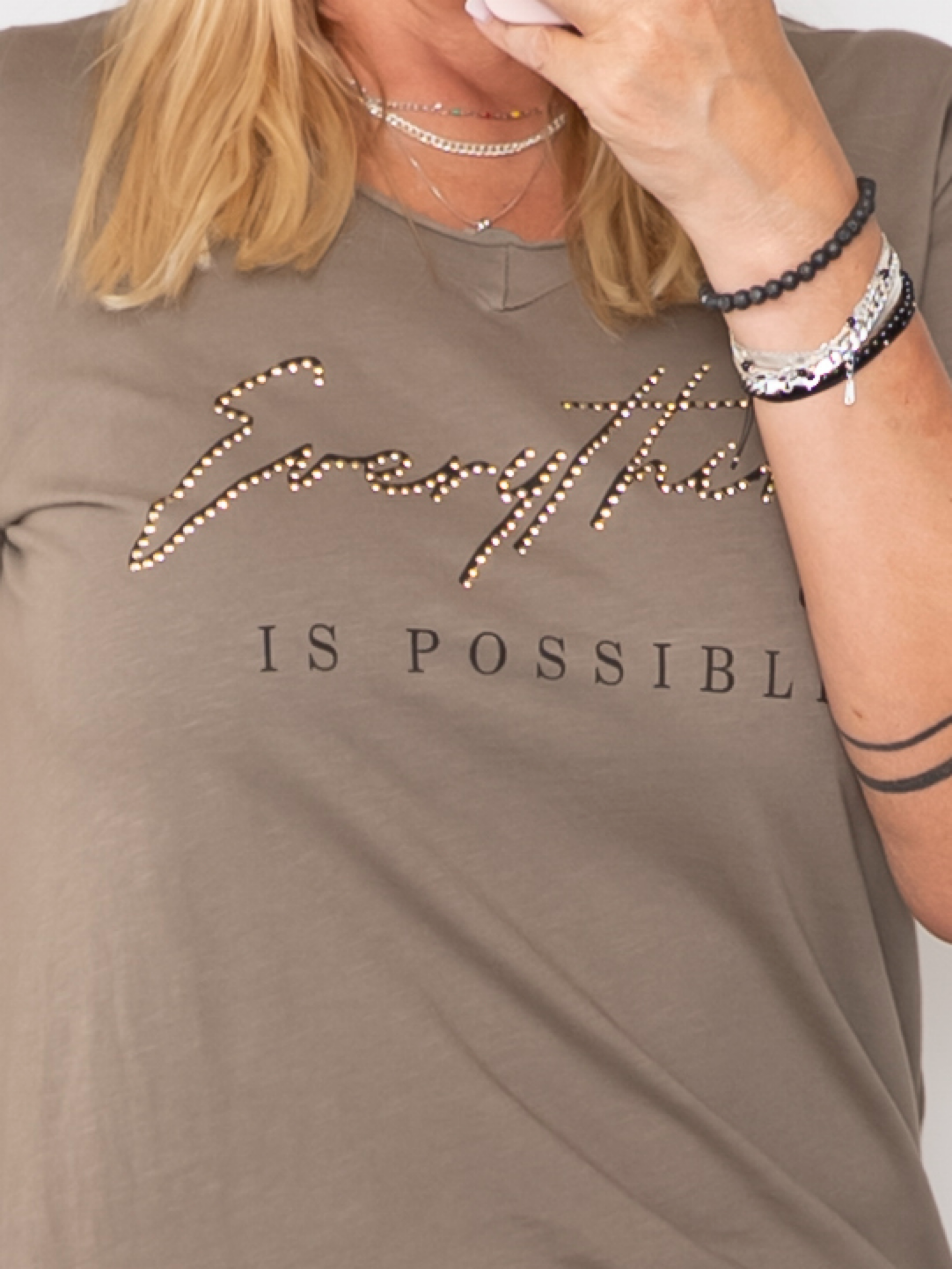 En t-shirt der emmer af attitude og komfort på én gang! Den bløde kvalitet gør den utrolig behagelig at have på, mens det flotte statement-print foran giver et strejf af personlighed og stil. Det dekorative budskab prydes af fine små nitter, som tilføjer en elegant og moderne detalje til looket.