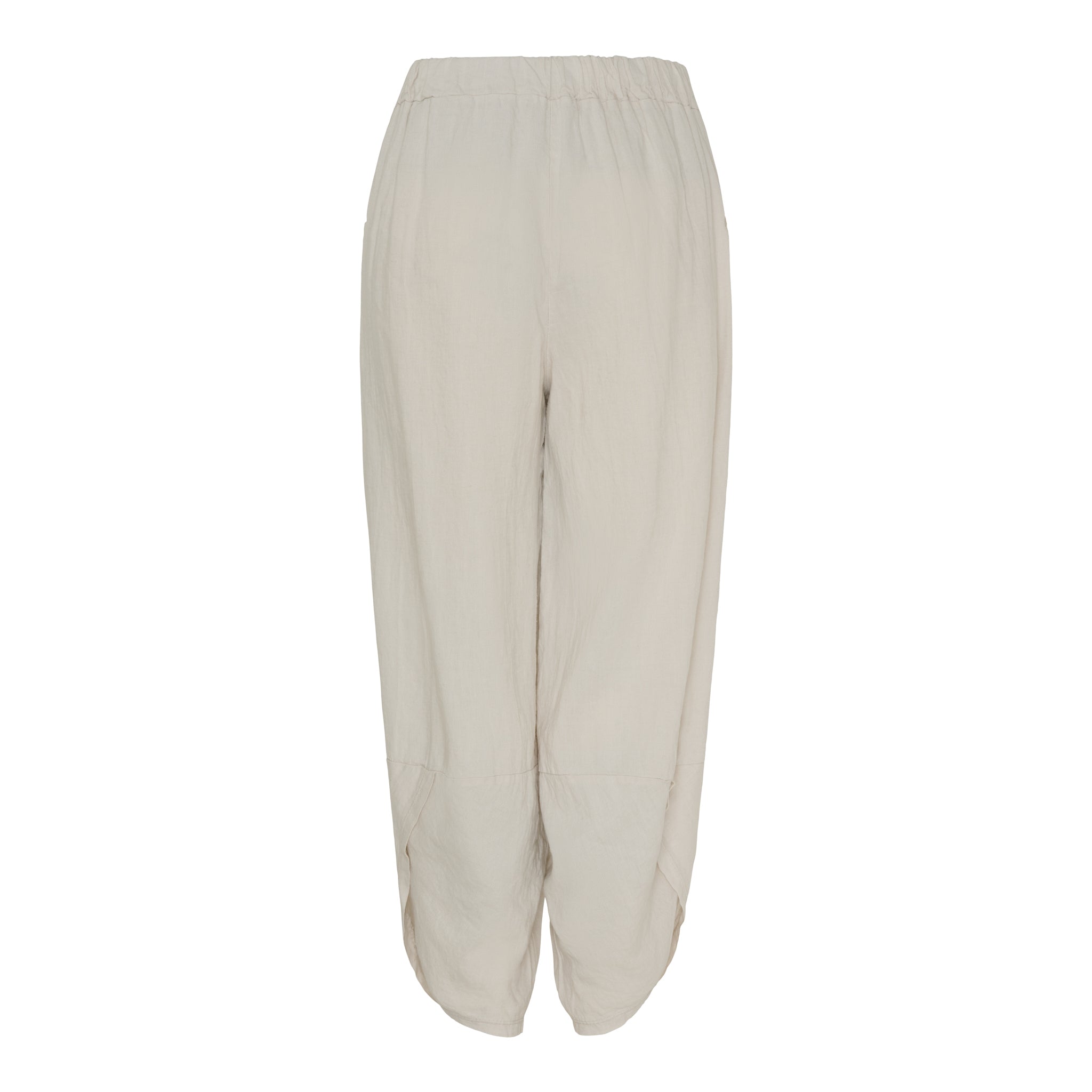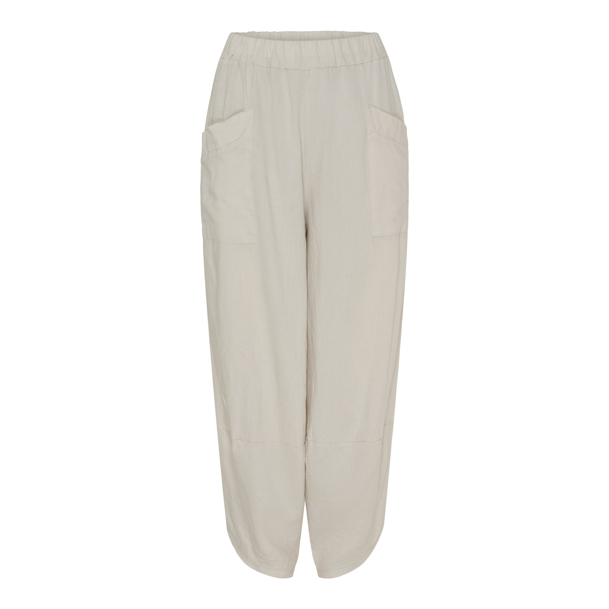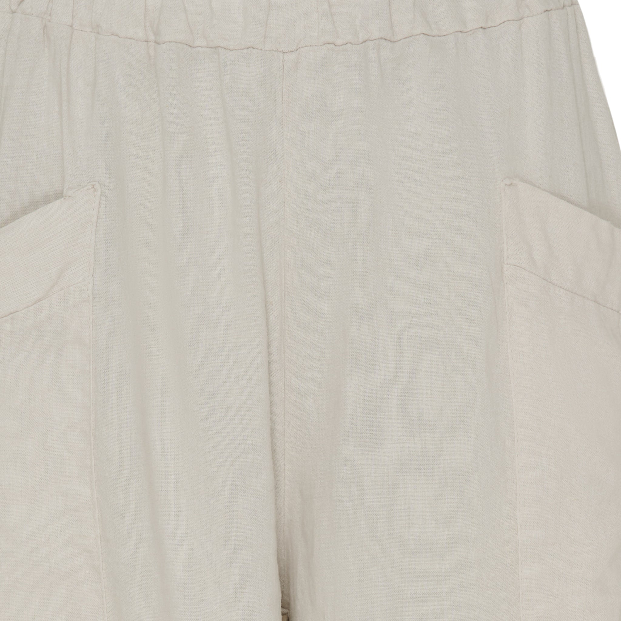Bukserne har elastik i taljen og to praktiske, synlige lommer foran, som giver et cool og afslappet udtryk. Det bløde hør/viscose materiale føles behageligt mod huden og gør dem nemme at style med både toppe og t-shirts.