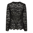 Denne elegante blondebluse tilføjer øjeblikkeligt et feminint og raffineret udtryk til garderoben. Det florale blondemønster skaber et let gennemsigtigt look, der både er romantisk og sofistikeret, perfekt til lag-på-lag styling.