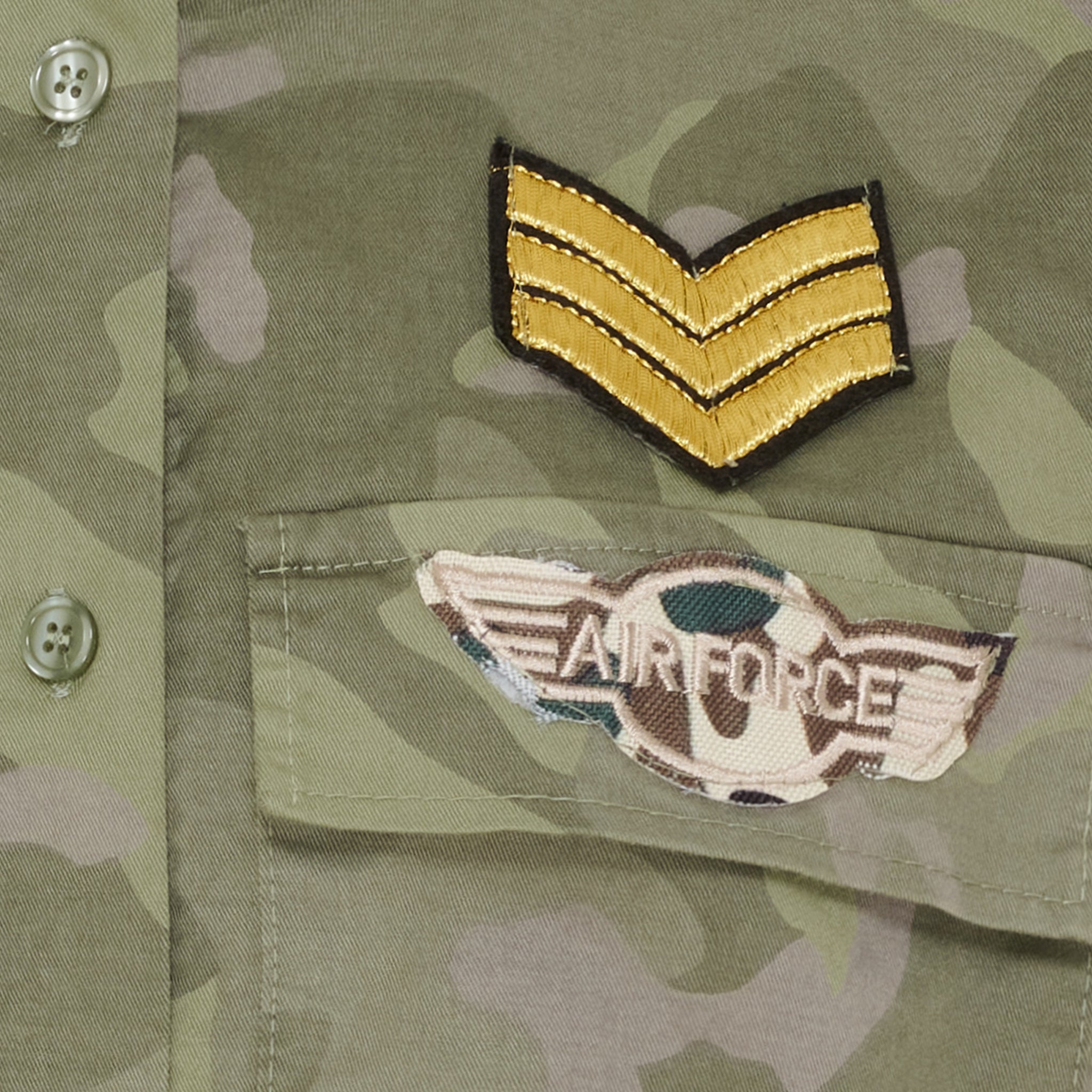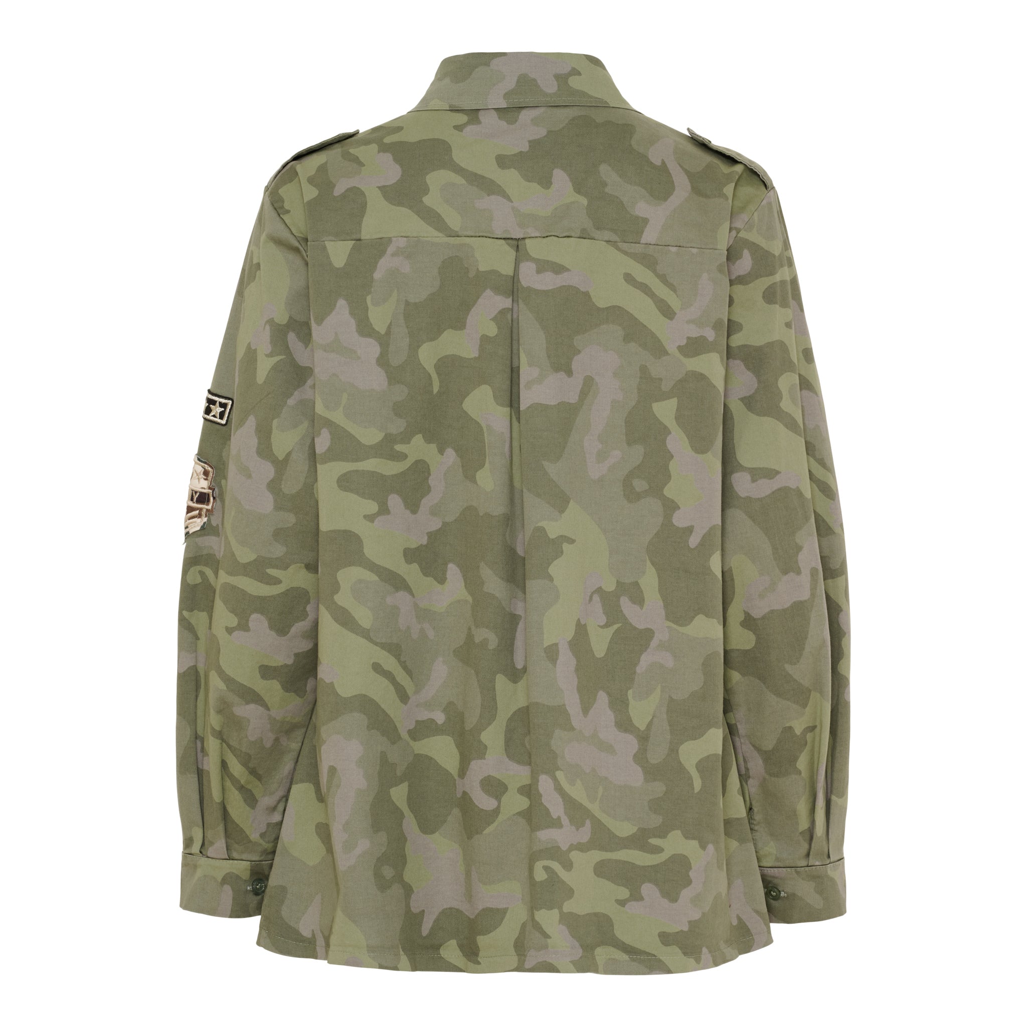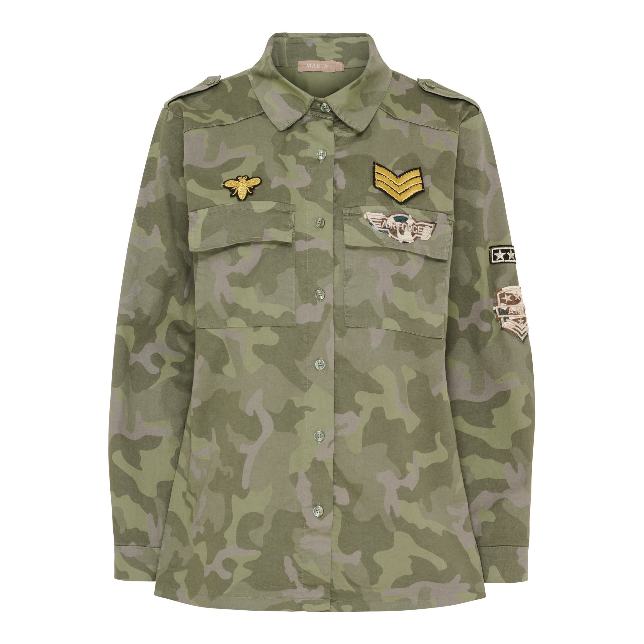 Militærinspirerede patches foran og på ærmet