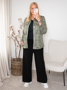 Jakken har et struktureret snit med skulderstropper og knaplukning hele vejen ned, hvilket gør den ideel både som lukket skjorte og åben over en tanktop eller kjole. Et musthave til garderoben for dig, der elsker det cool, afslappede udtryk med personlighed.