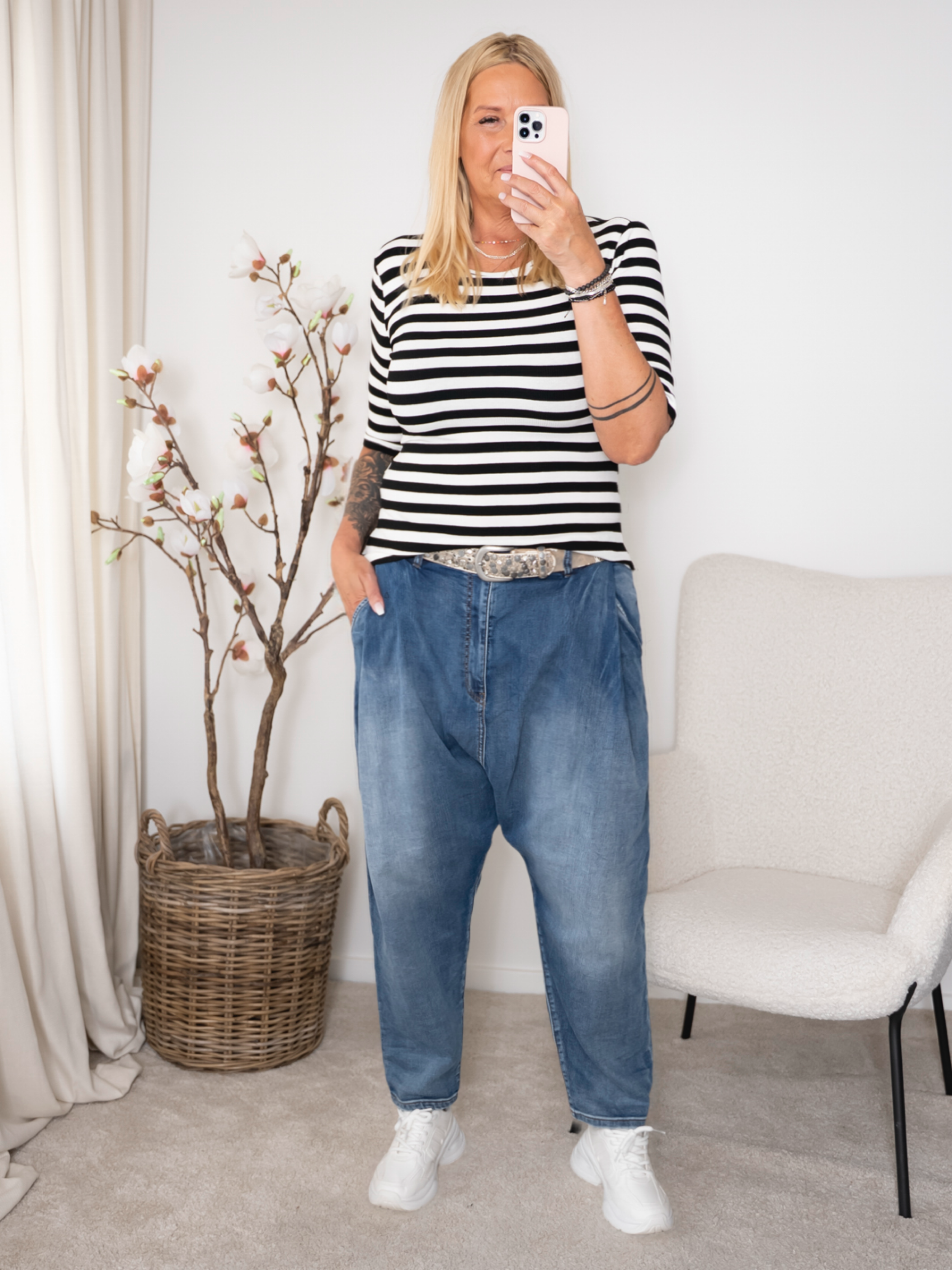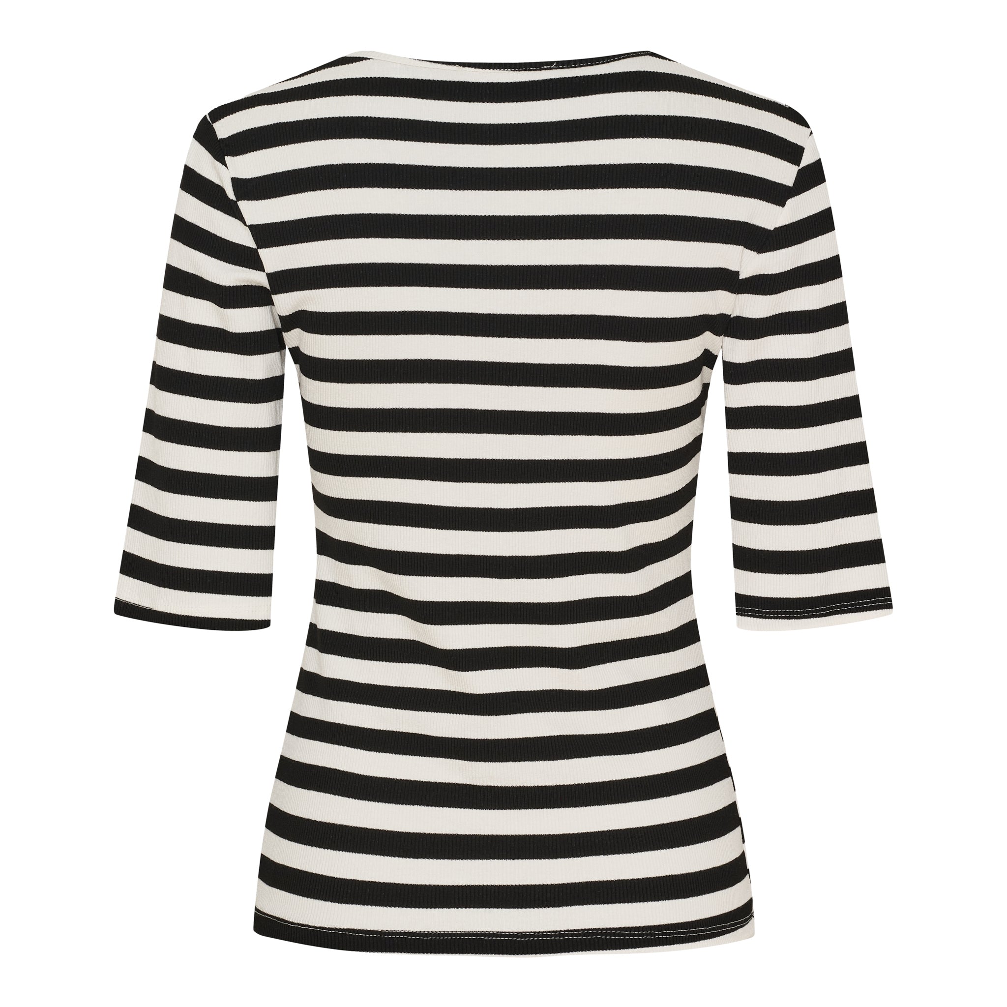 Denne stribede T-shirt er et skønt basis-item med masser af stil. Den ribbede kvalitet gør den både blød, fleksibel og flatterende – perfekt til dig, der vil føle dig godt tilpas hele dagen. Det klassiske stribede design kombineret med det tætsiddende snit giver en feminin og moderne silhuet, som passer ind i enhver garderobe.