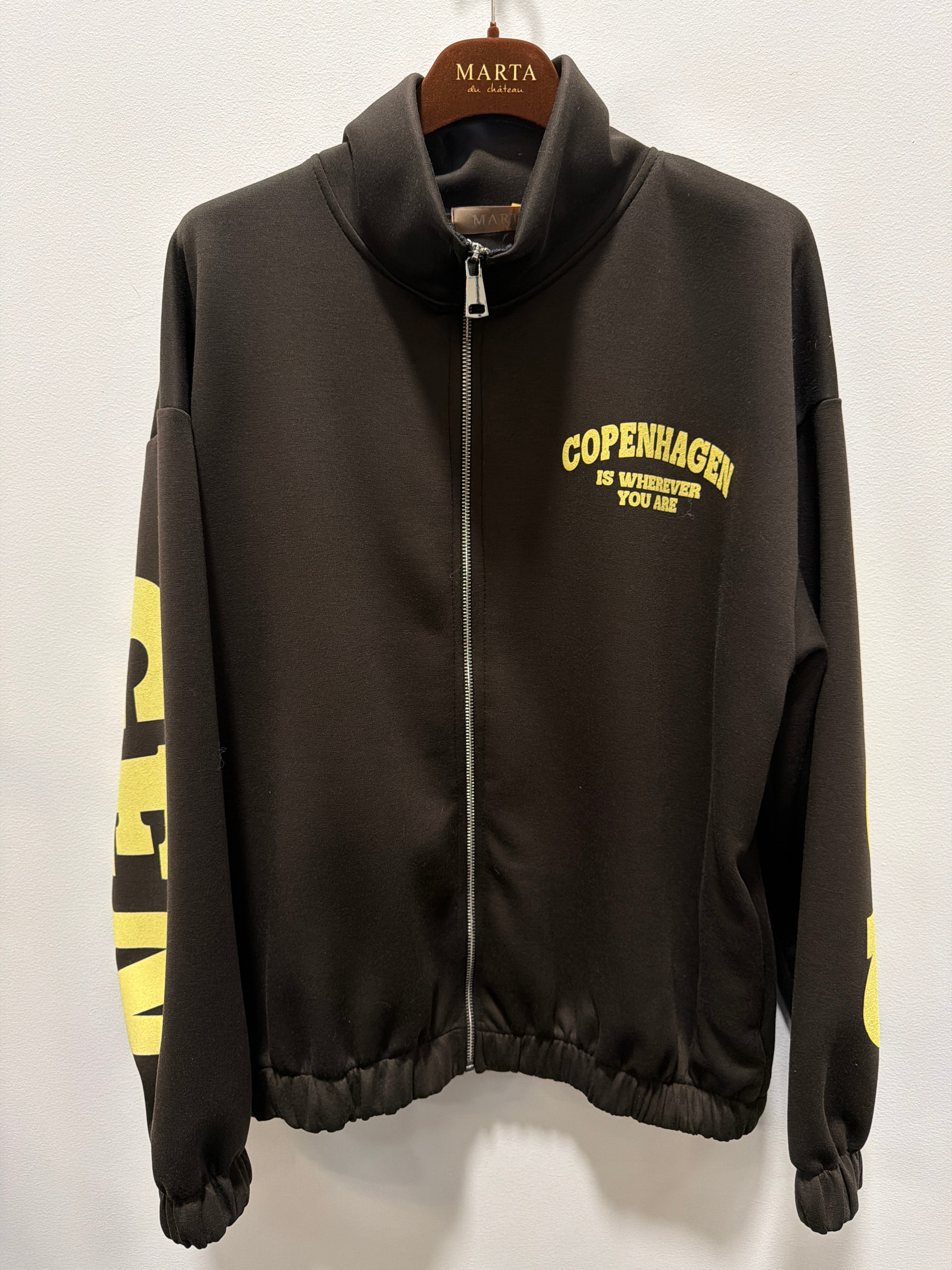 Denne sweatshirtjakke har et afslappet og moderne udtryk med et sporty twist. Det bløde materiale giver høj komfort og gør jakken ideel til både hverdagsbrug og afslappede dage. Det markante tekstprint tilfører et urbant look, mens den gennemgående lynlås gør den nem at style lag-på-lag.