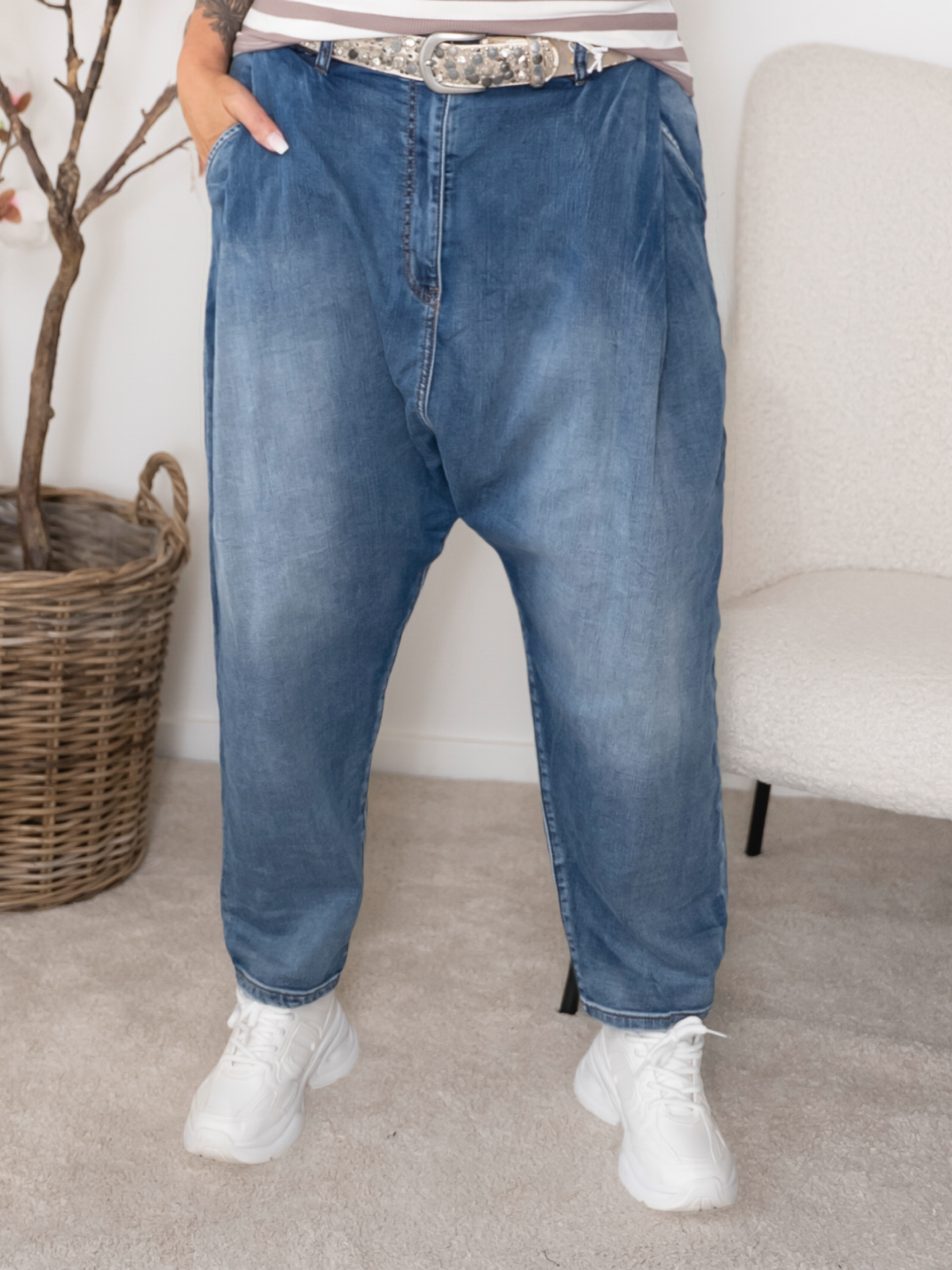 Disse denim-bukser er det perfekte valg til dig, der elsker en afslappet og stilfuld hverdagsstil. Den bløde og fleksible kvalitet gør dem super behagelige at have på, mens det vaskede look giver et råt og moderne udtryk. Pasformen er løs med lavere skridt og let taperede ben, hvilket giver et cool, baggy og casual vibe uden at gå på kompromis med komforten.