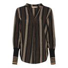 Skjorten har en løs pasform og en flatterende V-udskæring, som gør den nem at style både til hverdag og kontor.