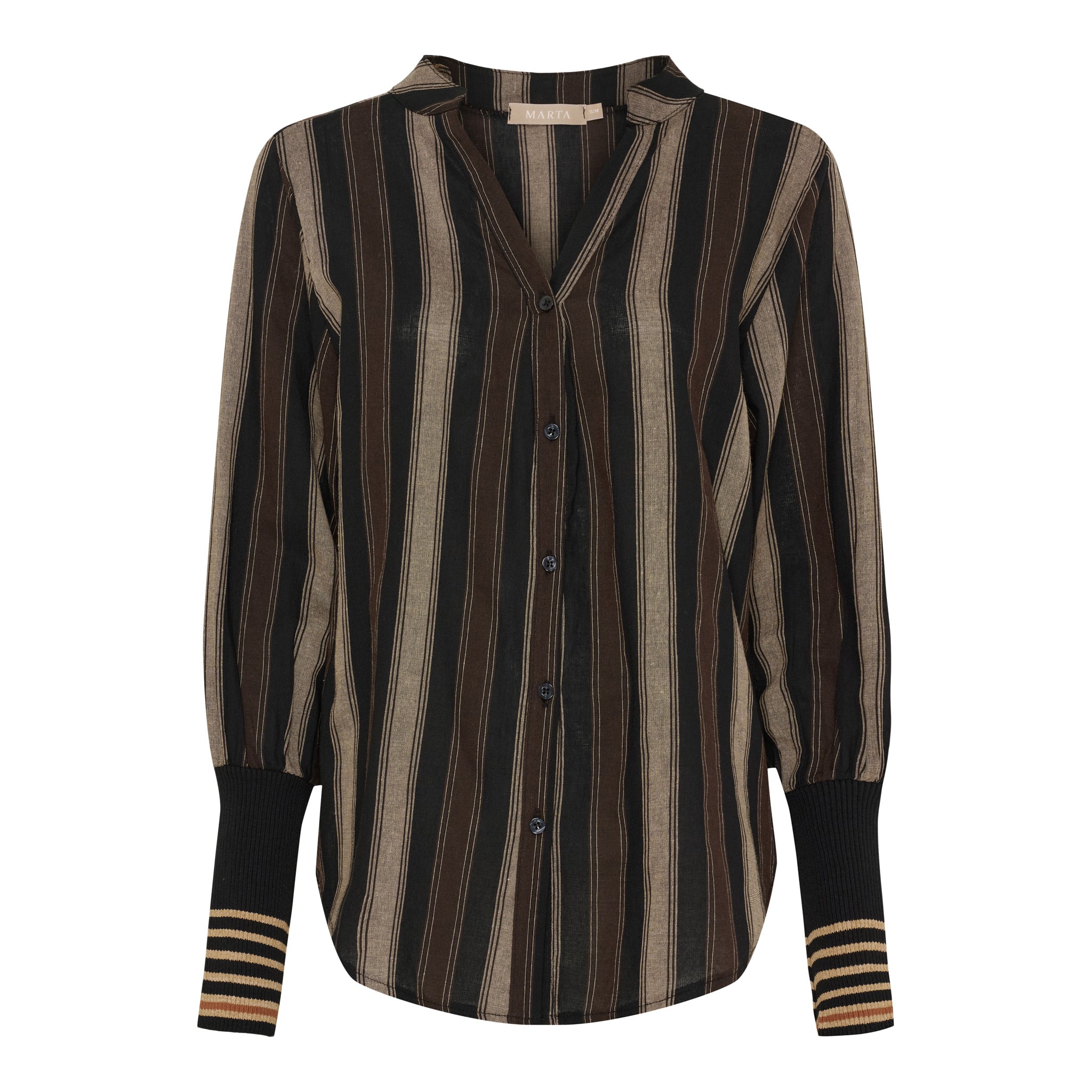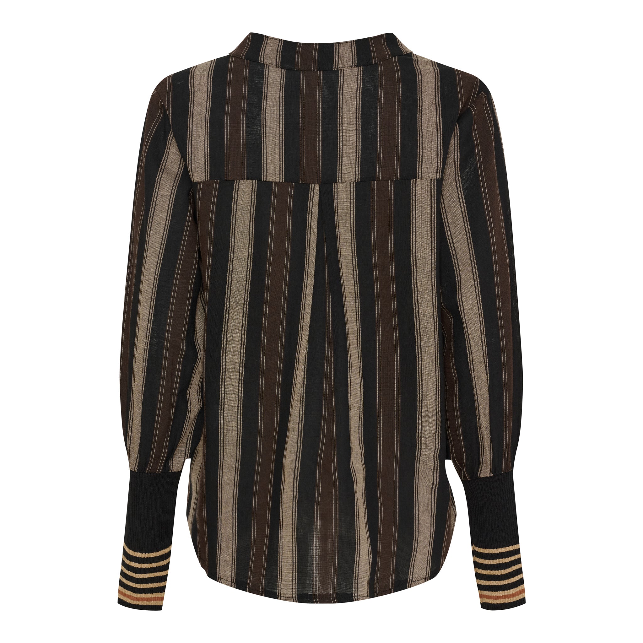 Denne skjorte kombinerer et klassisk stribet design med moderne detaljer, der giver et afslappet og stilfuldt udtryk. Det lette materiale gør den behagelig at have på, mens de kontrastfulde manchetter med striber tilfører et sporty twist.