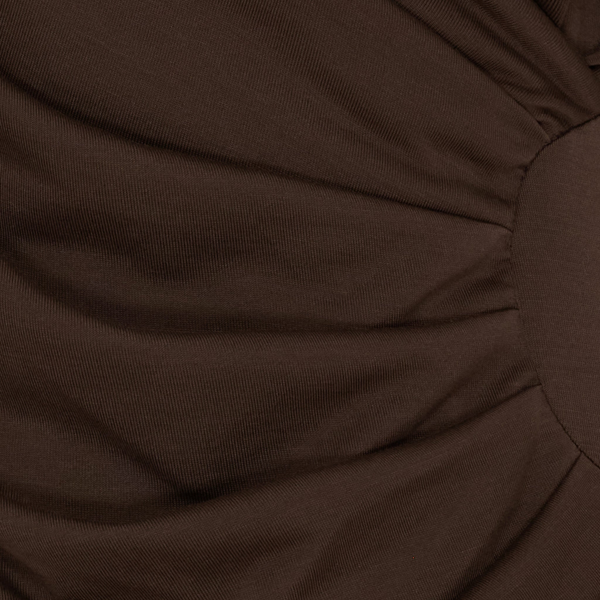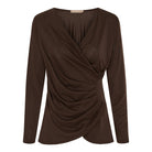 Den dybe V-udskæring og det iøjnefaldende rynk ved siden skaber en smuk taljering, som fremhæver figuren på fineste vis. Detaljerne gør toppen ideel til både hverdagsbrug og mere festlige lejligheder.