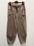 Bukserne er designet med elastisk talje og bindebånd, som sikrer en fleksibel og komfortabel pasform. De praktiske lommer foran tilfører et casual præg, mens de dekorative sømme og let formede ben giver et gennemført og velafbalanceret udtryk.