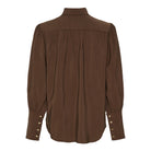 Denne skjorte forener klassisk elegance med moderne finesse. Det rene snit og den let løstsiddende pasform giver et tidløst udtryk, mens de fine detaljer som guldknapper og diskrete læg ved skuldrene tilfører feminint raffinement. Det bløde materiale falder smukt og gør skjorten behagelig at have på – hele dagen.