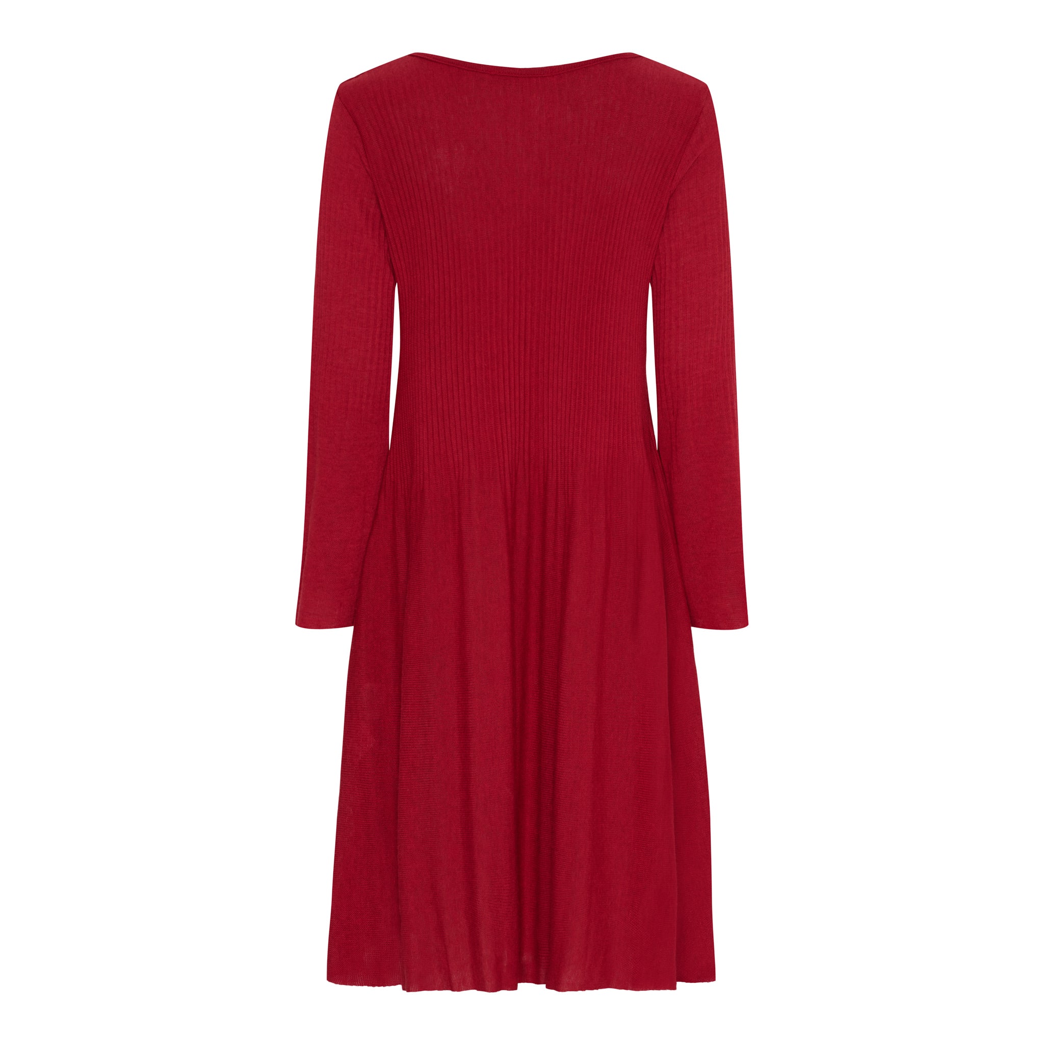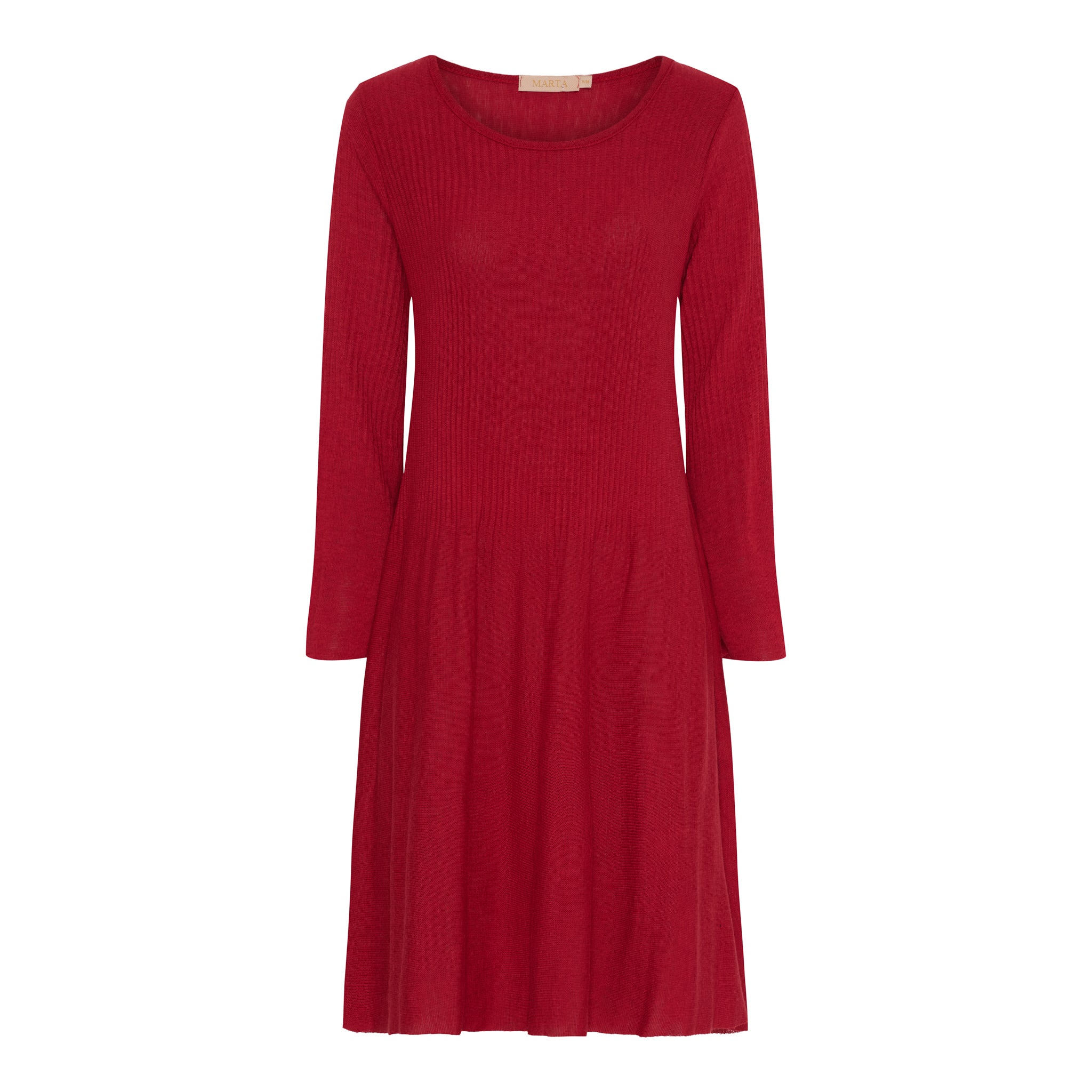 Denne smukke kjole er et tidløst valg, der kombinerer elegance og komfort på bedste vis. Den bløde og lette finstrik smyger sig behageligt om kroppen og giver en flatterende silhuet. Den klassiske rund halsudskæring og lange ærmer gør kjolen alsidig og perfekt til enhver lejlighed – uanset om det er en afslappet dag eller en mere festlig anledning.
