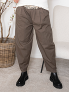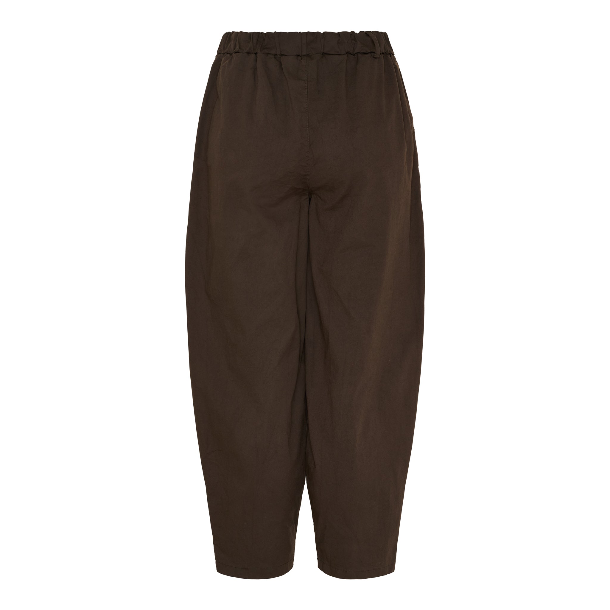 Pasformen er løs med en høj talje, elastik bagpå og bæltestropper, som sikrer både bevægelsesfrihed og mulighed for styling med bælte. De let tilspidsede ben skaber en flatterende silhuet og giver et cool, urbant twist.