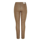 Pasformen er smal med stretch, hvilket sikrer god bevægelsesfrihed og en flatterende silhuet. Buksen har klassisk 5-lommers design og en markant knaplukning foran med forskellig dekoration, der giver ekstra blikfang.