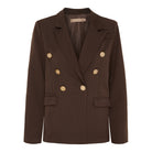 Denne dobbeltradede blazer tilføjer et sofistikeret og struktureret element til enhver garderobe. Det klassiske snit kombineret med dekorative knapper giver et eksklusivt udtryk, der både kan styles til hverdagsbrug og mere formelle anledninger.