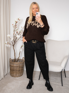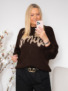 Denne striktrøje bringer både varme og humør ind i garderoben med sit charmerende “Smile”-motiv. Den er lavet i en kraftig, ultra blød strik, der føles behagelig mod huden og giver et afslappet, men stilfuldt udtryk. Den klassiske rund hals og ribkanter ved ærmer og bund sikrer en god pasform og holder formen flot.