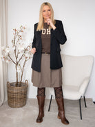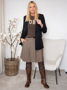 En alsidig nederdel, der fungerer perfekt med strømpebukser og støvler i hverdagen – og med en let bluse eller strik for et mere elegant og gennemført look.