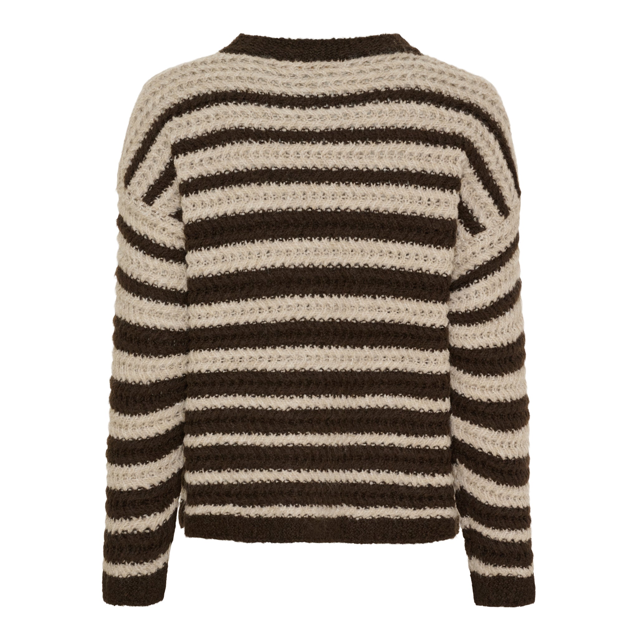 Strikken har en klassisk rund hals og en afslappet pasform, som gør den ideel til lag-på-lag styling. Den teksturerede strikstruktur tilføjer ekstra dybde og charme – perfekt til dig, der ønsker en lun, men let og åndbar strik.