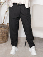 Disse bukser med stribede detaljer forener komfort med et elegant og moderne udtryk. Den løstsiddende pasform og det elastiske bagstykke i taljen gør dem behagelige at have på hele dagen, mens det klassiske design gør dem nemme at style op eller ned alt efter anledning.