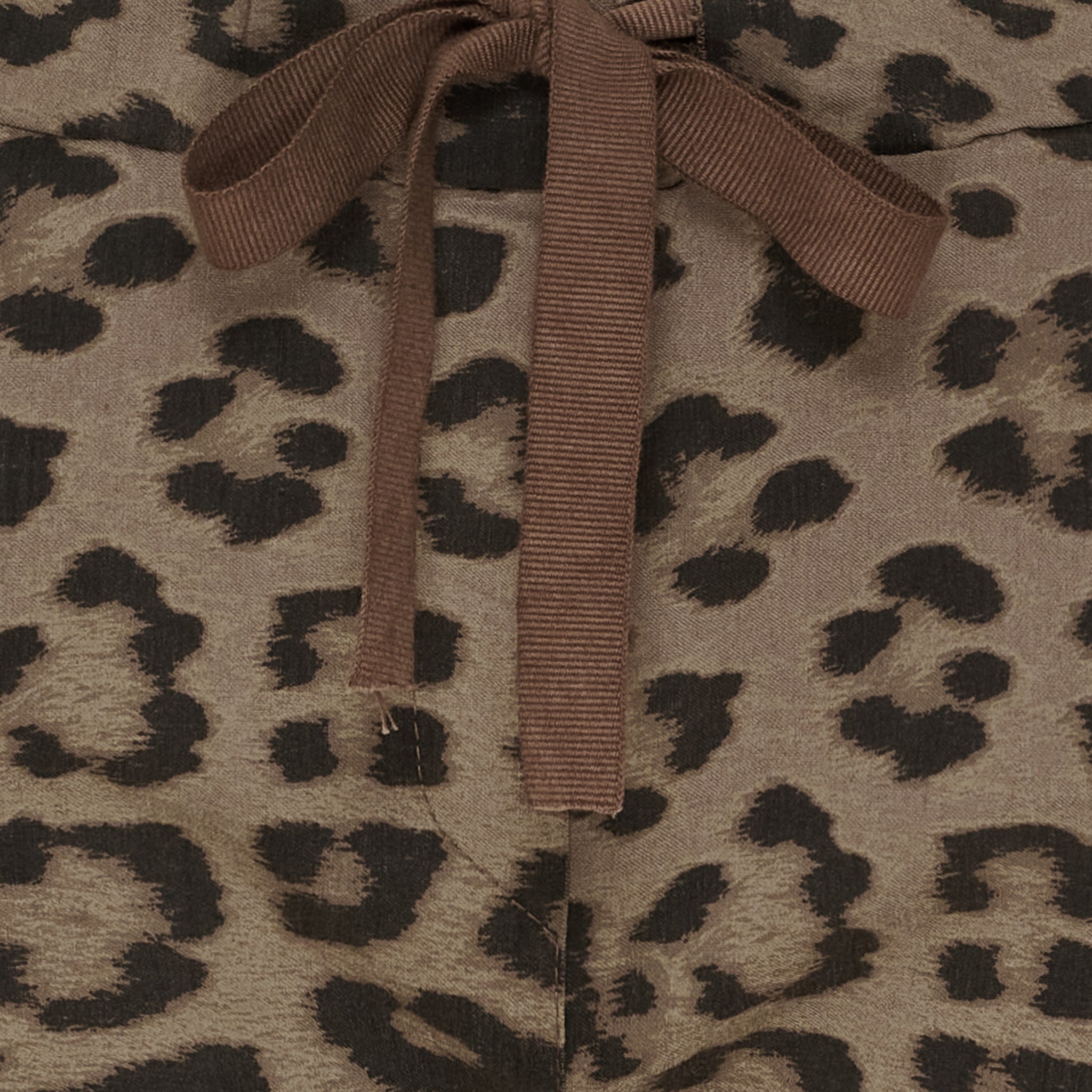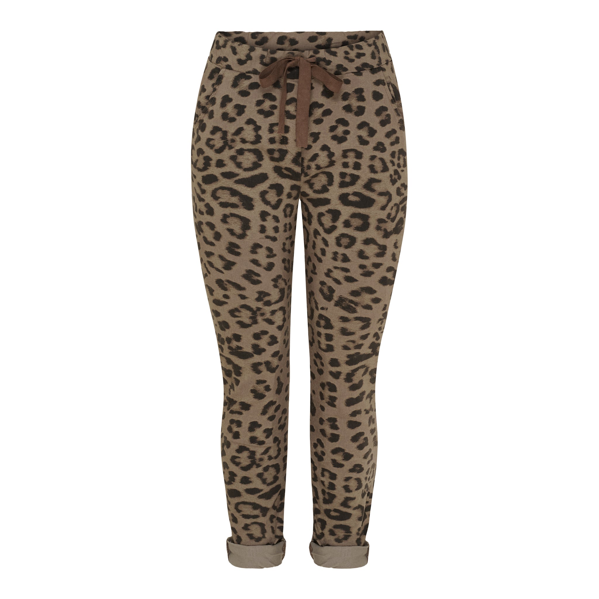 Disse leopardmønstrede bukser kombinerer afslappet pasform med et edgy look – perfekt til dig, der elsker at skille dig ud uden at gå på kompromis med komforten. Den bløde kvalitet føles fantastisk mod huden, mens det elastiske taljebånd med bindebånd sikrer en behagelig og fleksibel pasform.