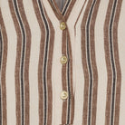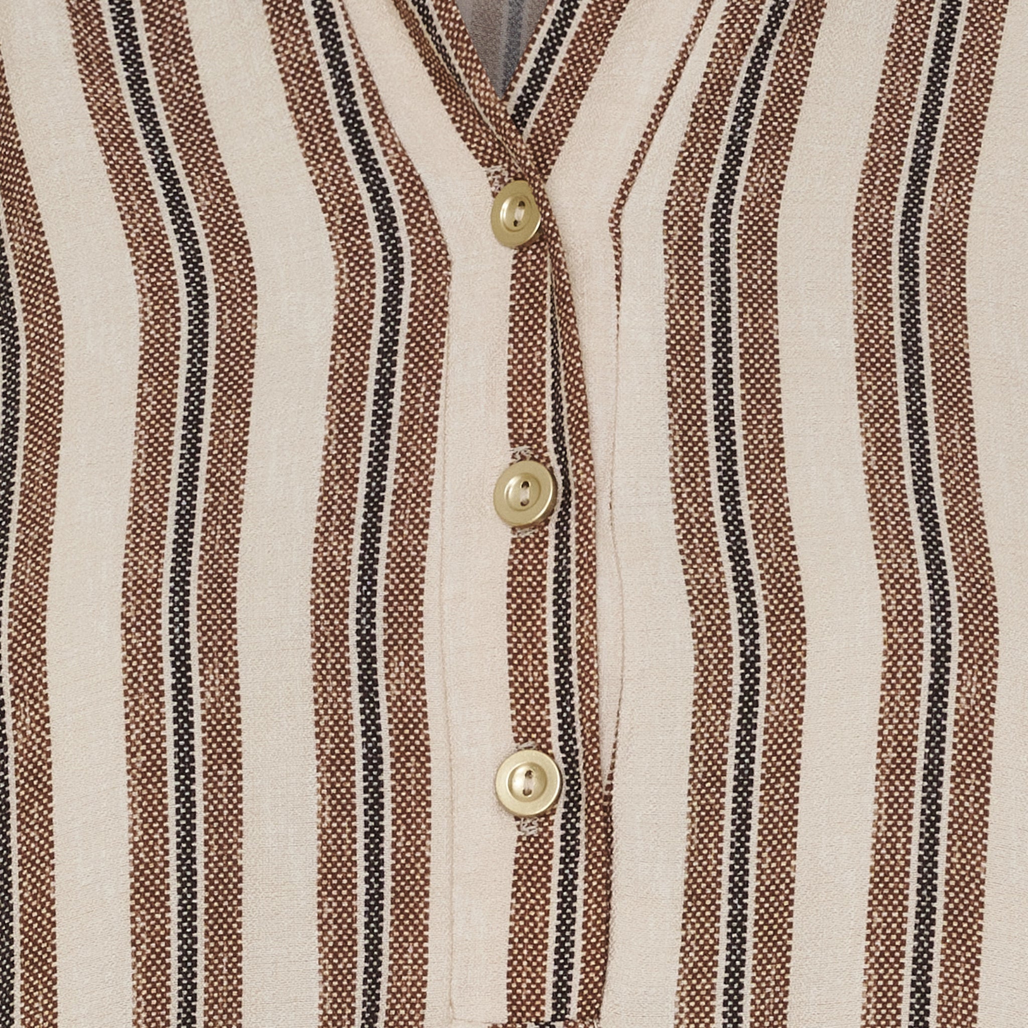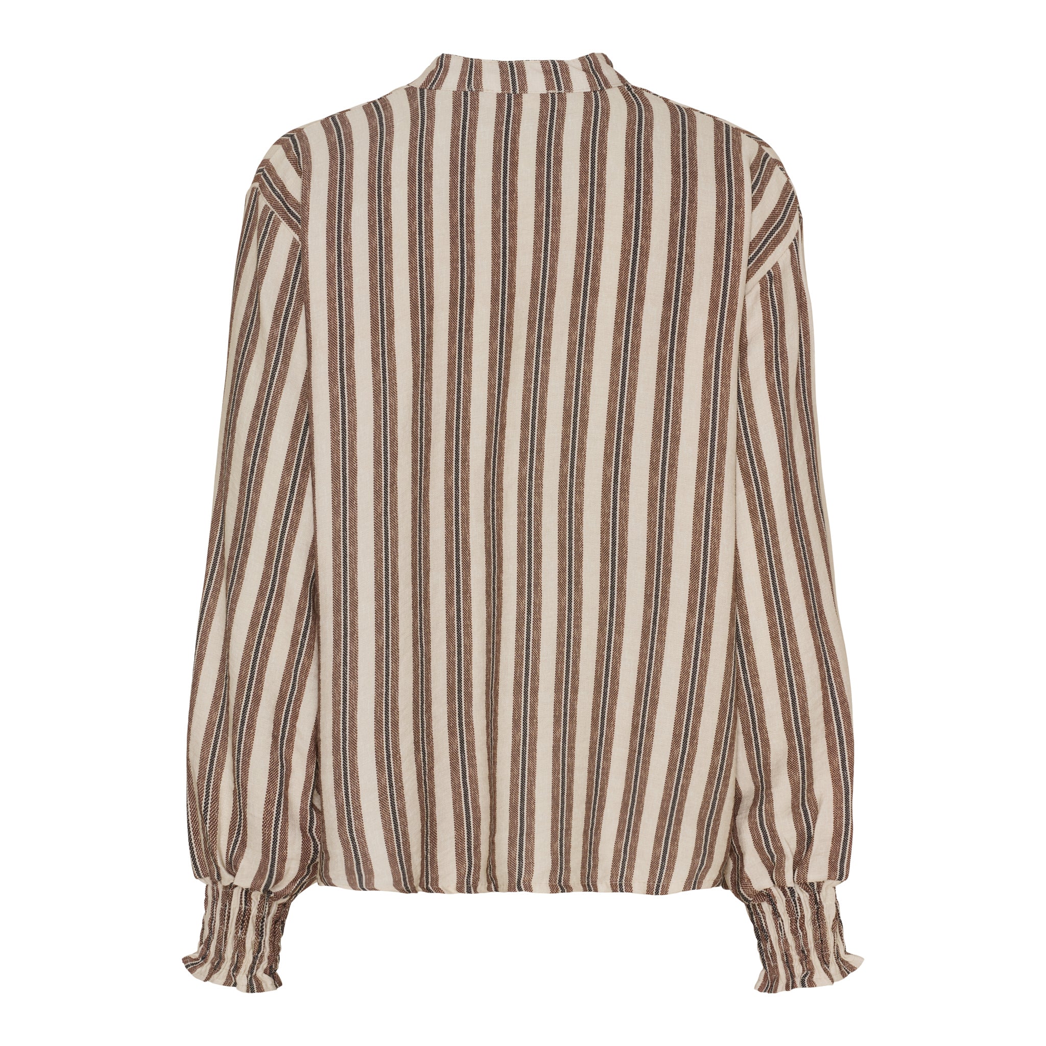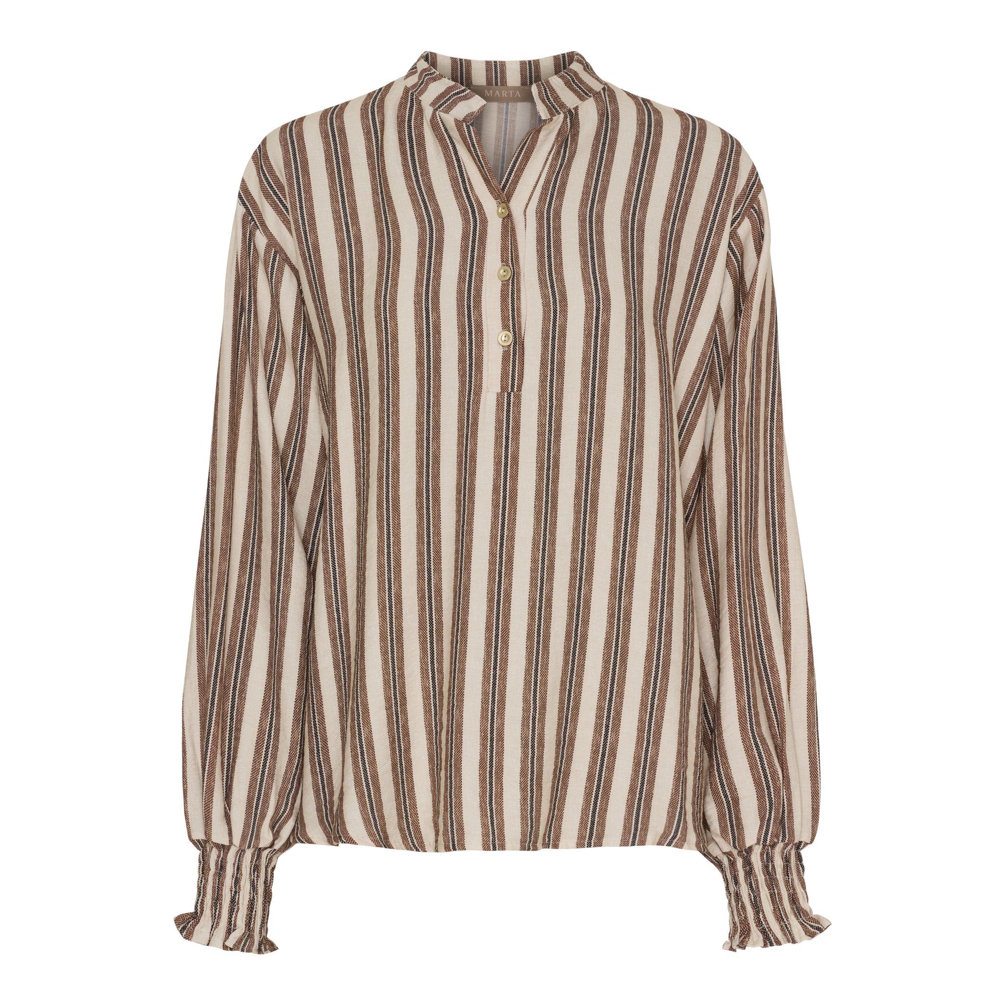Denne stribede bluse forener et klassisk udtryk med feminine detaljer og en afslappet elegance. De lodrette striber skaber et let og visuelt forlængende look, mens den bløde kvalitet falder flot og behageligt mod kroppen.