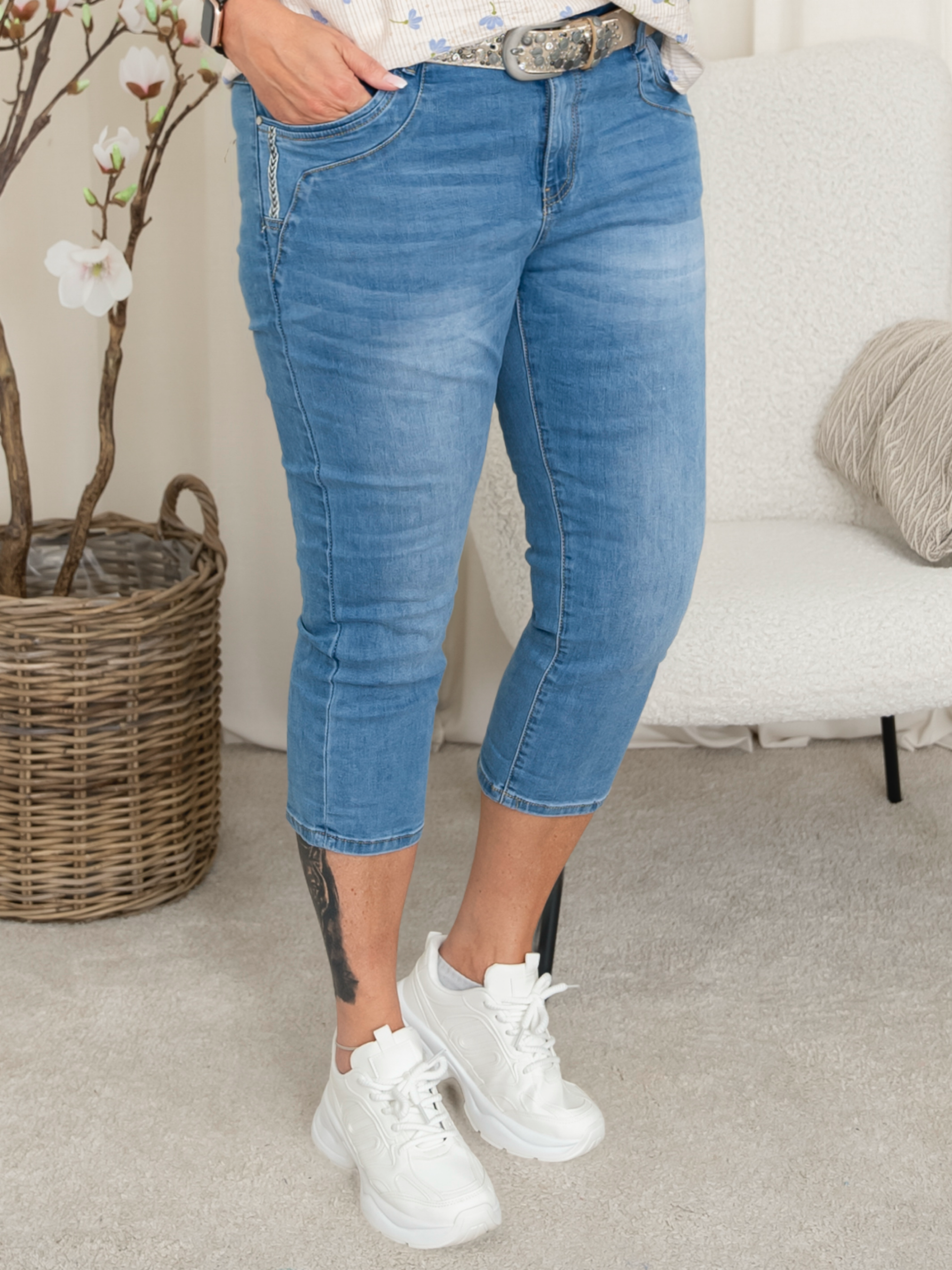 Disse knælange denim capribukser er et must-have til sommergarderoben – perfekte til varme dage, hvor komfort og stil skal gå hånd i hånd. Det flatterende snit og det strækbare denim giver en behagelig pasform, som følger kroppen uden at stramme.