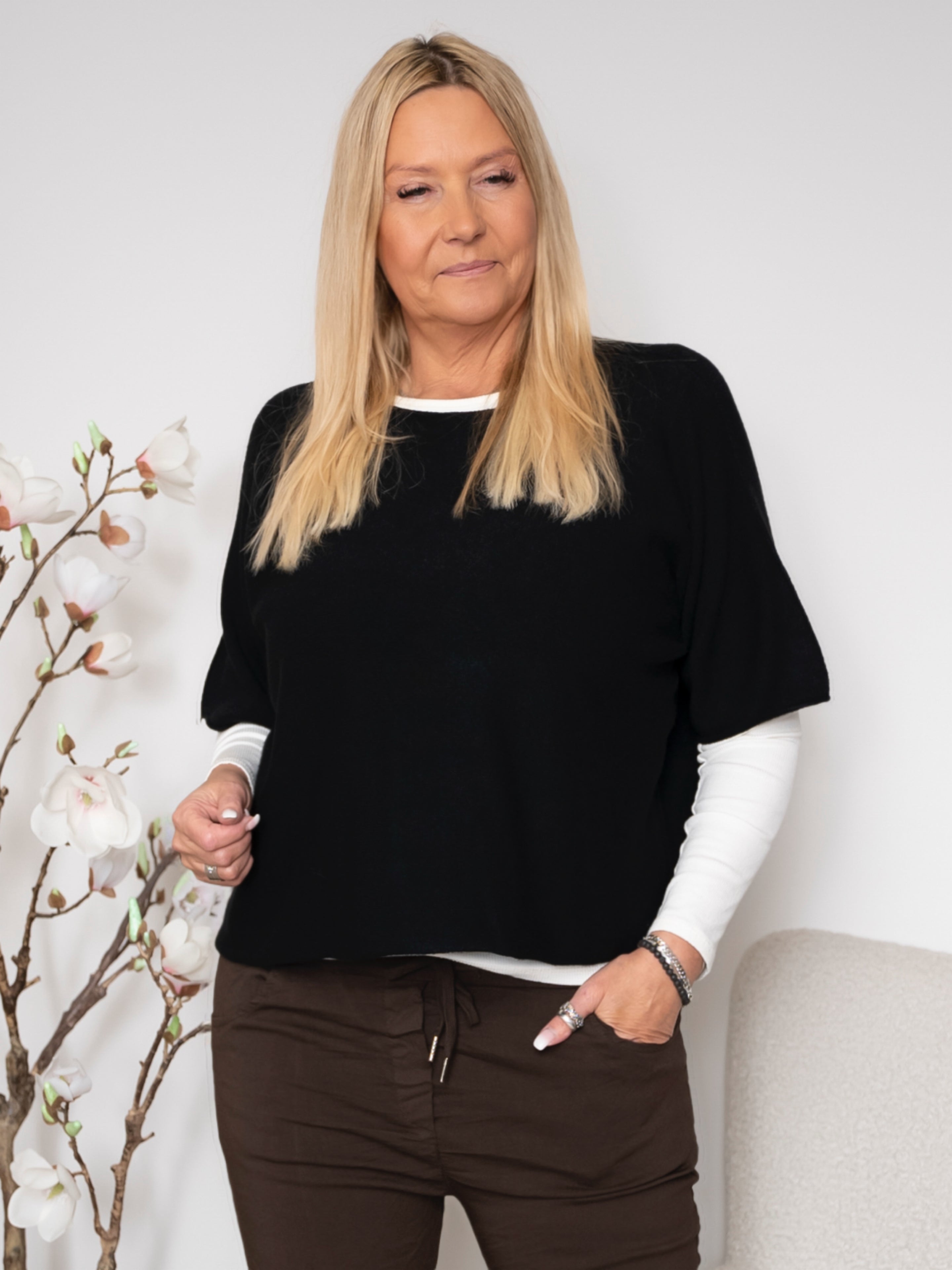 Blød og stilfuld bluse, der kombinerer enkel elegance med en afslappet pasform. Perfekt til både hverdag og særlige anledninger, hvor du ønsker et komfortabelt, men moderne look.