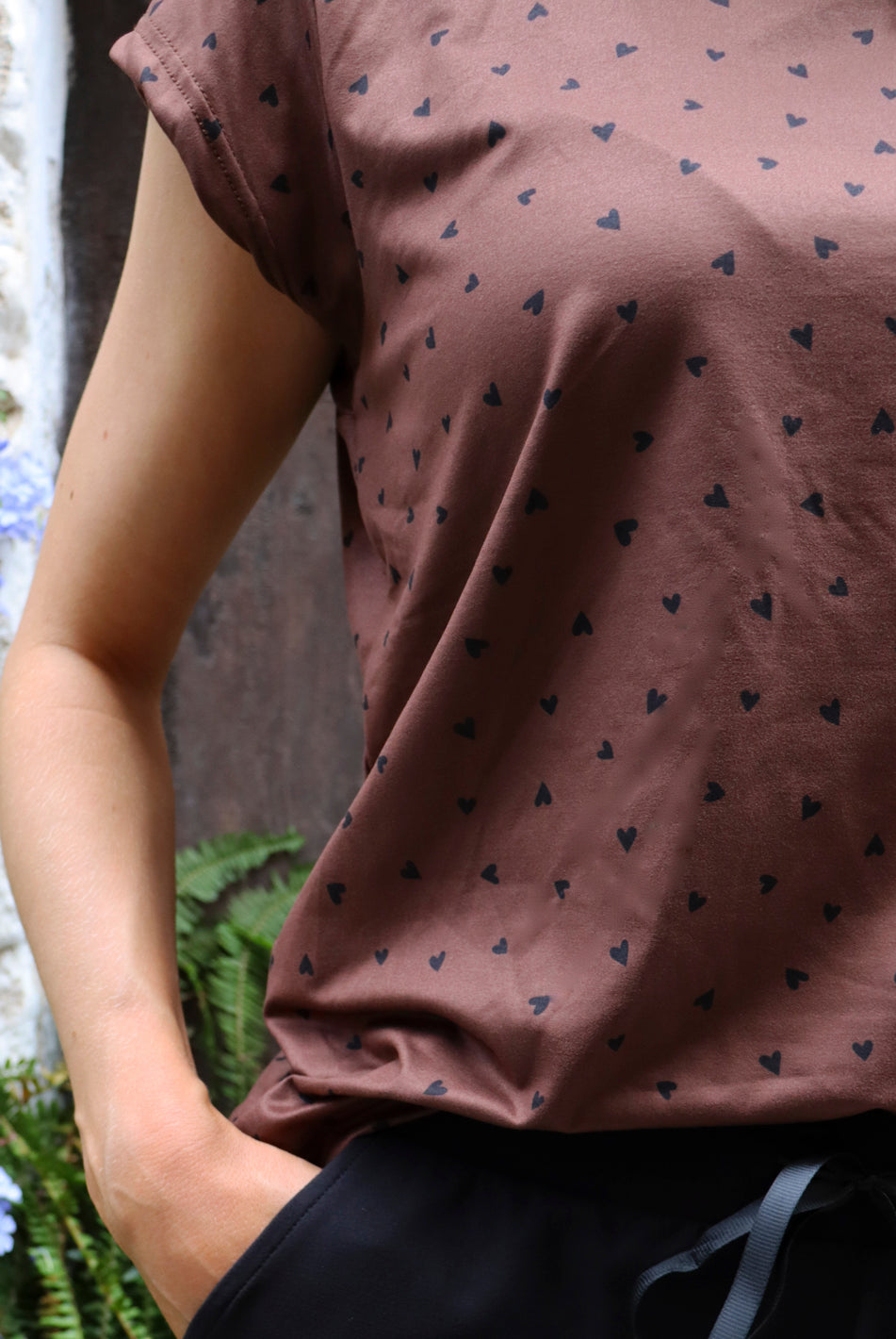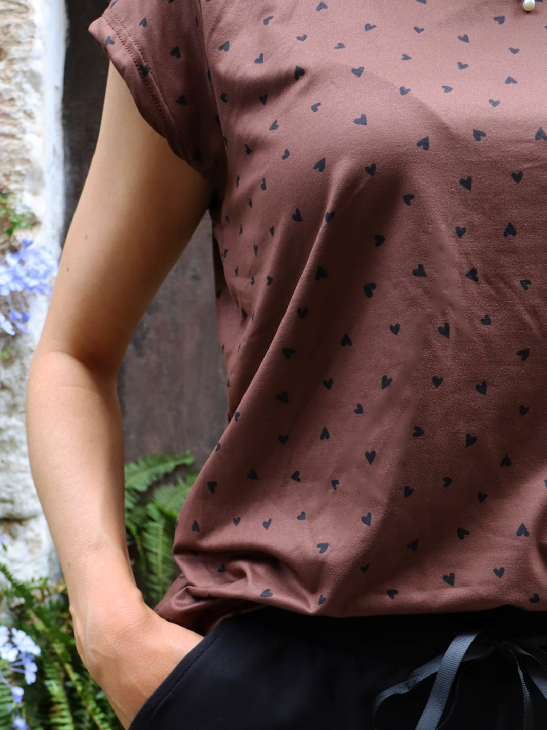 Den lette og behagelige kvalitet sikrer en skøn følelse hele dagen, mens de korte ærmer og den løse pasform giver en flatterende silhuet. Den runde halsudskæring tilfører et klassisk touch, og blusen er nem at style til både jeans, nederdele og bukser.